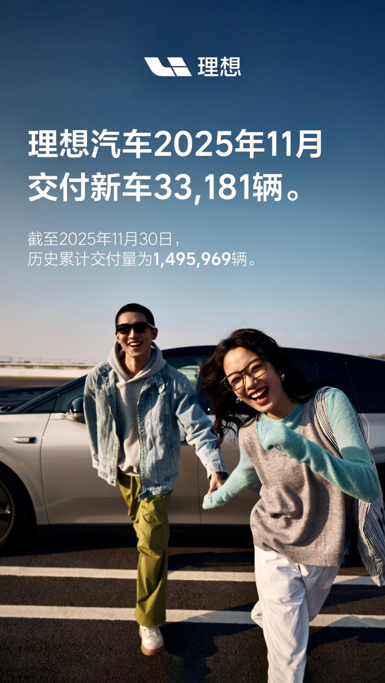蔚来、小鹏、理想,三家月交付数据出来了!大家都是三万多,差距越小感觉越刺激。2025年11月蔚来交付36275台,同比增76.3%!蔚来、乐道、萤火虫三大品牌协同发力,累计交付已达949457台,多品牌矩阵成效显著。小鹏11月交付36728台,同比增长19%。2025年1-11月,小鹏汽车累计交付391,937台,同比增长156%。理想11月交付33181辆。截至2025年11月30日,历史累计交付量为1,495,969辆。