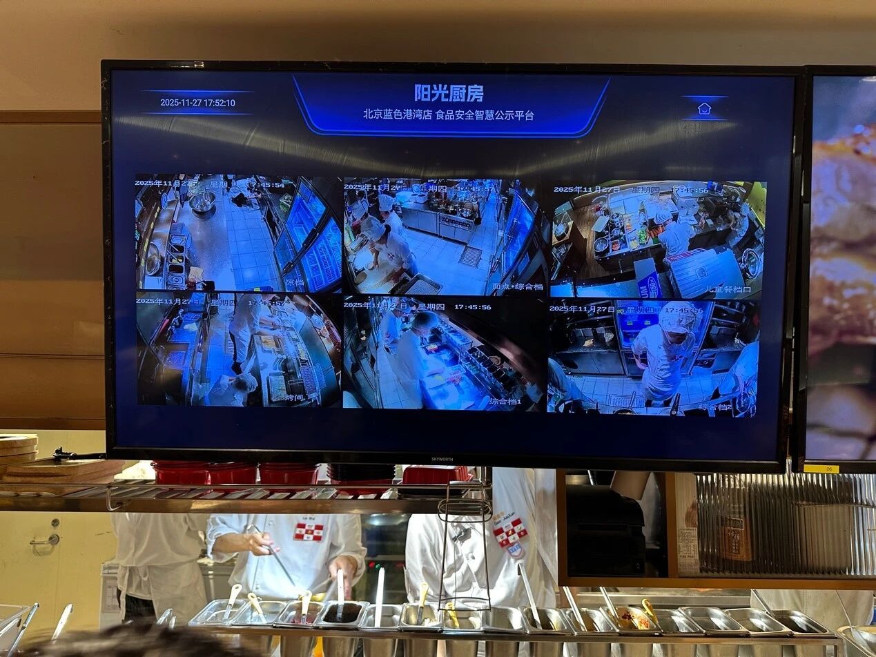 这就是事实胜于雄辩吧,西贝门店升级,全面落实“阳光厨房”政策,正通过门店电视屏幕