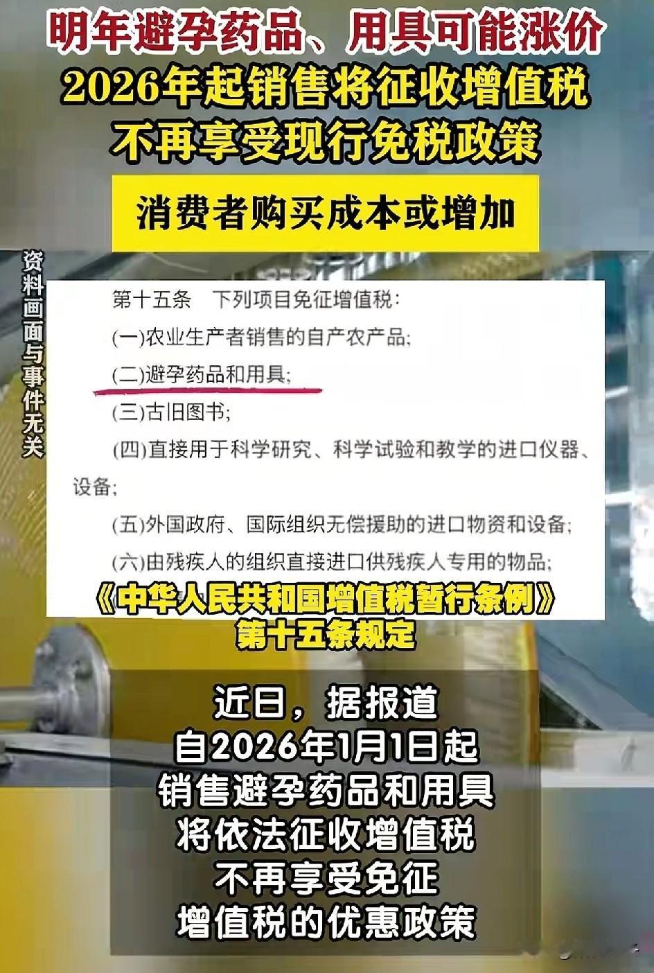 避孕套要收增值税啦![捂脸] 这玩意以前还有免费领的,如今不但要买还要交税了,看来“大家长”为了提高生育率,也是操碎了心,但是可能忽略了一点,如今好多人连对象都没有,所以也就用不到了![捂脸] 12月1日,据媒体报道,从2026年1月起,销售避孕药品和用具将依法征收增值税,不再享受免增值税优惠政策。 此消息一出瞬间引起全网热议,大家纷纷感慨“专家”们为了出生率也是绞尽脑汁啊! 套套本来不但可以预防怀孕,还可以有效防御传染病的扩散,如今提高价格明摆着就是让大家都不用了,安全真的能得到保障吗? 此外,要想提高出生率并不是几个套套的事情,如果房价没有那么高,彩礼再适当一些,教育和医疗再惠民一些,基层老百姓的收入再提高一些,我想这才是老百姓最大的心声吧? 而不是天天惦记着我们口袋里的那三瓜两枣,日子都好过了,没有那么大的生活压力,我想大家也就不会担心生娃的焦虑了!成人日用避孕套
