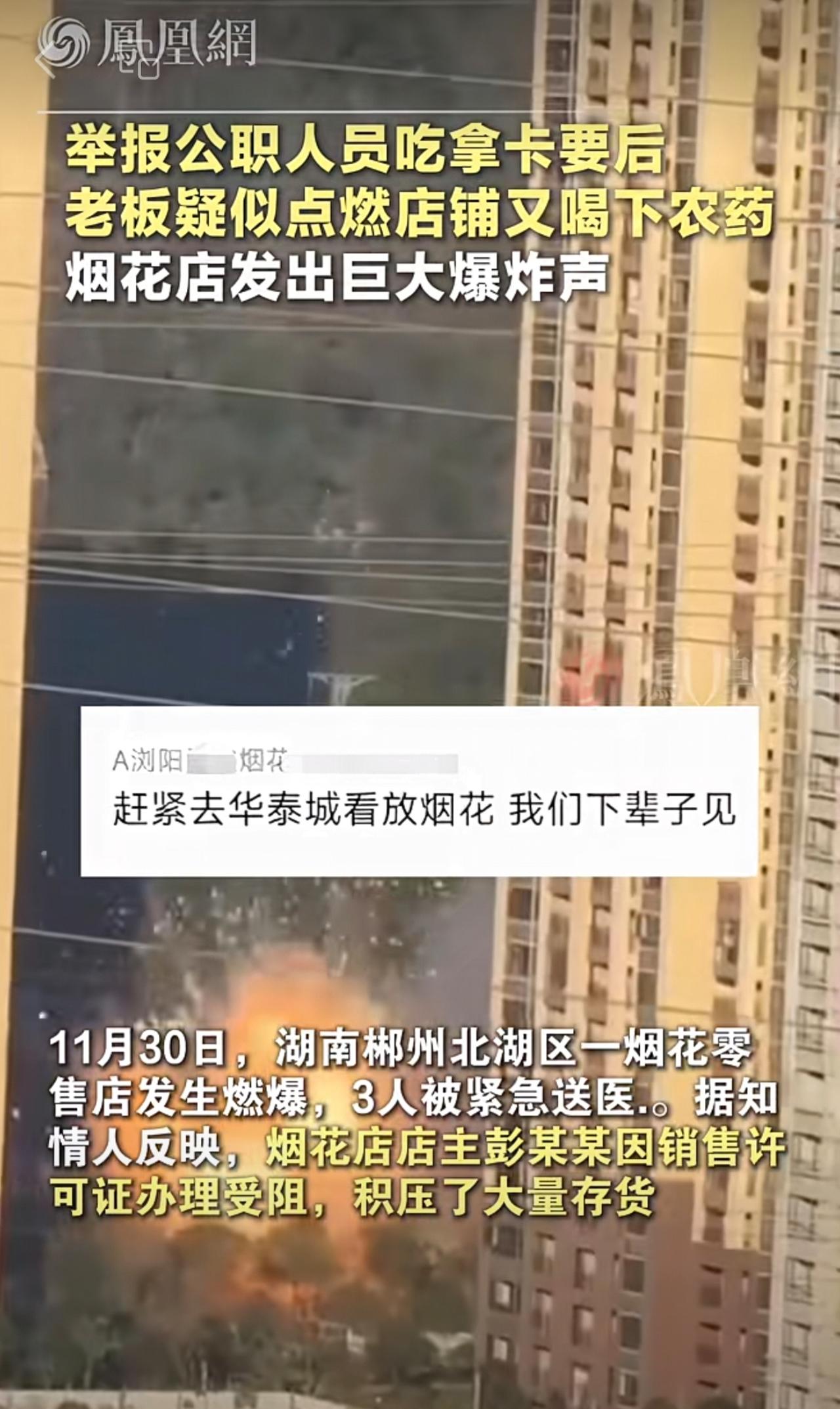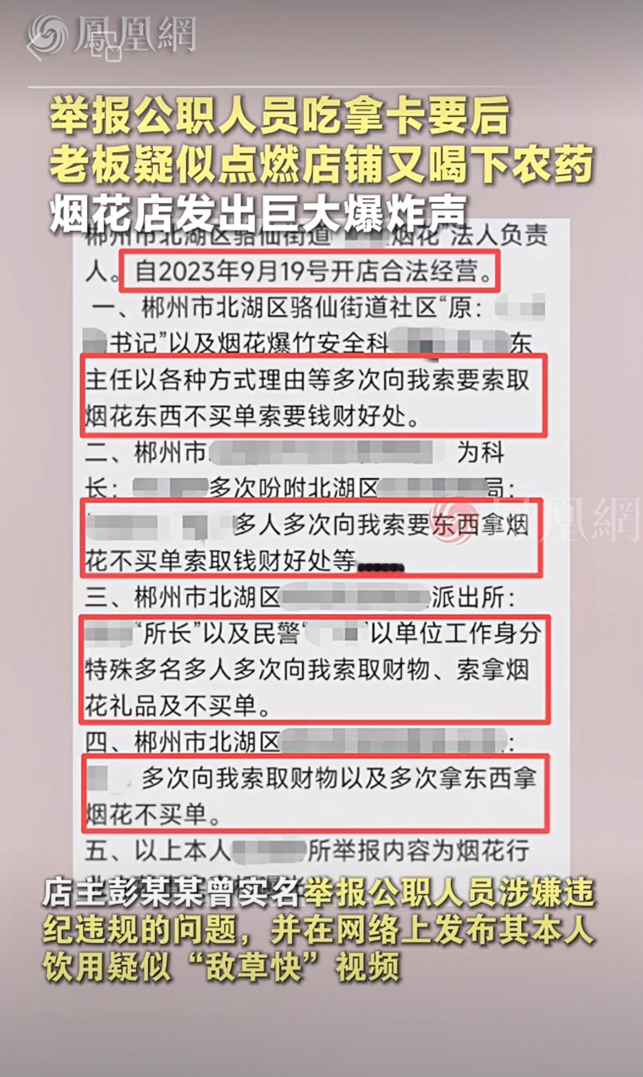 实名举报公职人员吃拿卡要后,烟花店老板疑似点燃店铺又喝下农药“敌草快”,现场发出巨大爆炸声 湖南 郴州