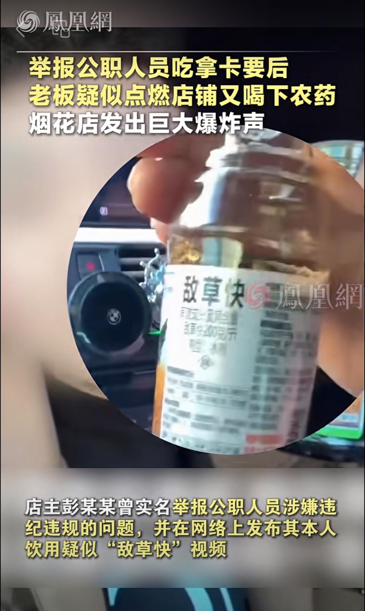 实名举报公职人员吃拿卡要后,烟花店老板疑似点燃店铺又喝下农药“敌草快”,现场发出