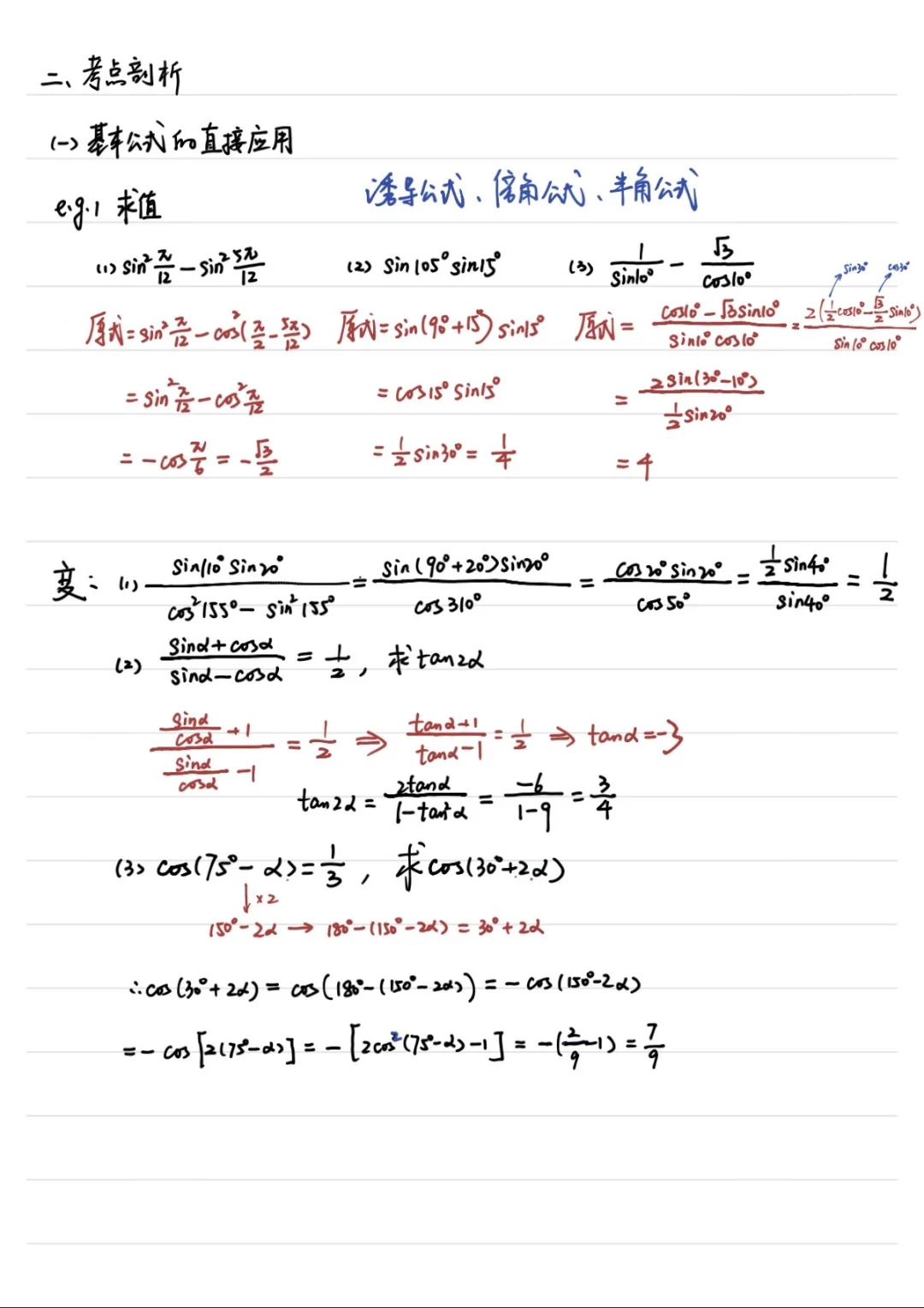 好久都没更新了,其实已经开始讲第四章了,为了加快进度,就跳过了第三章… 三角恒等变换主要是公式整理➕典型例题。