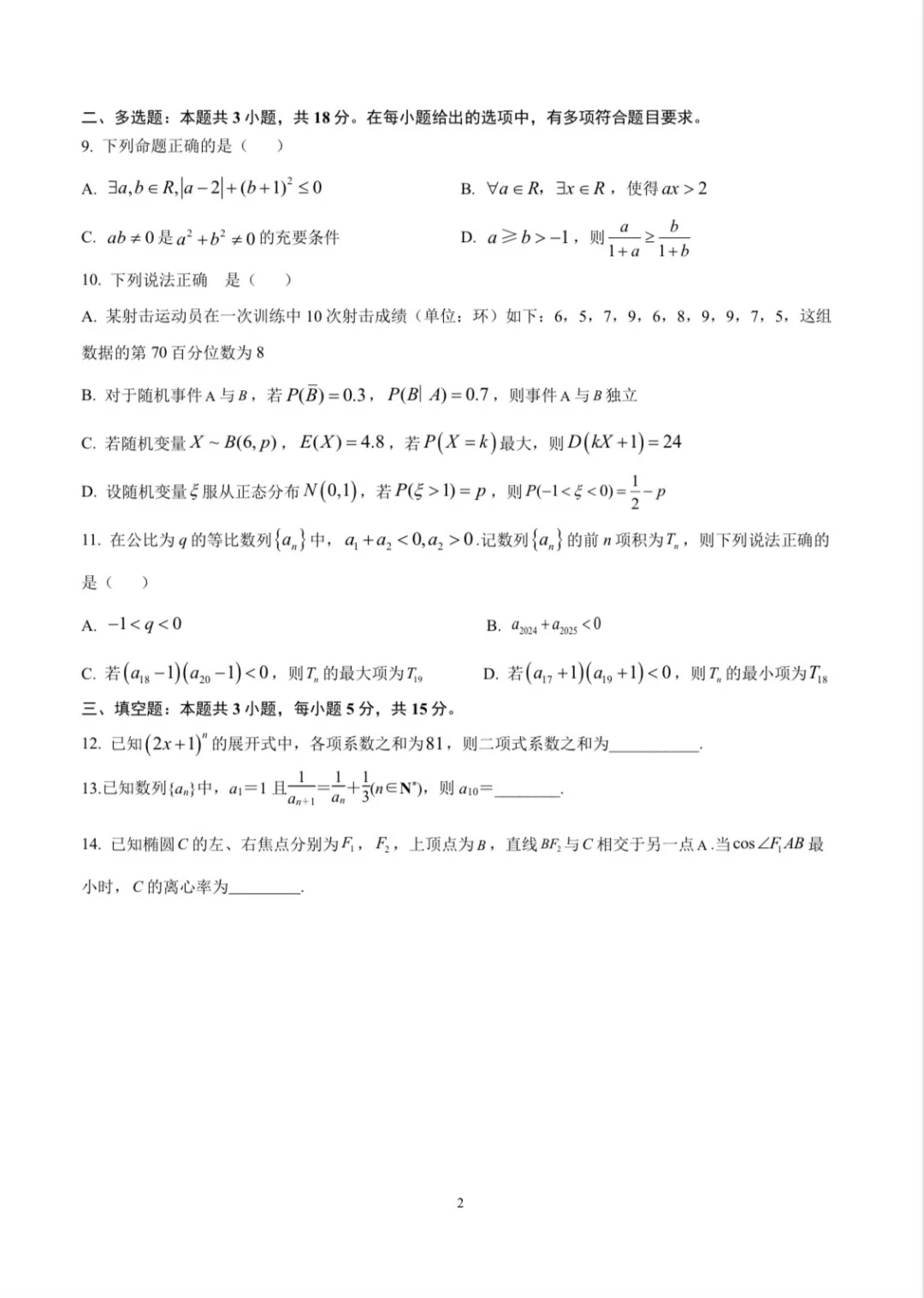 高三数学周考试卷(二)