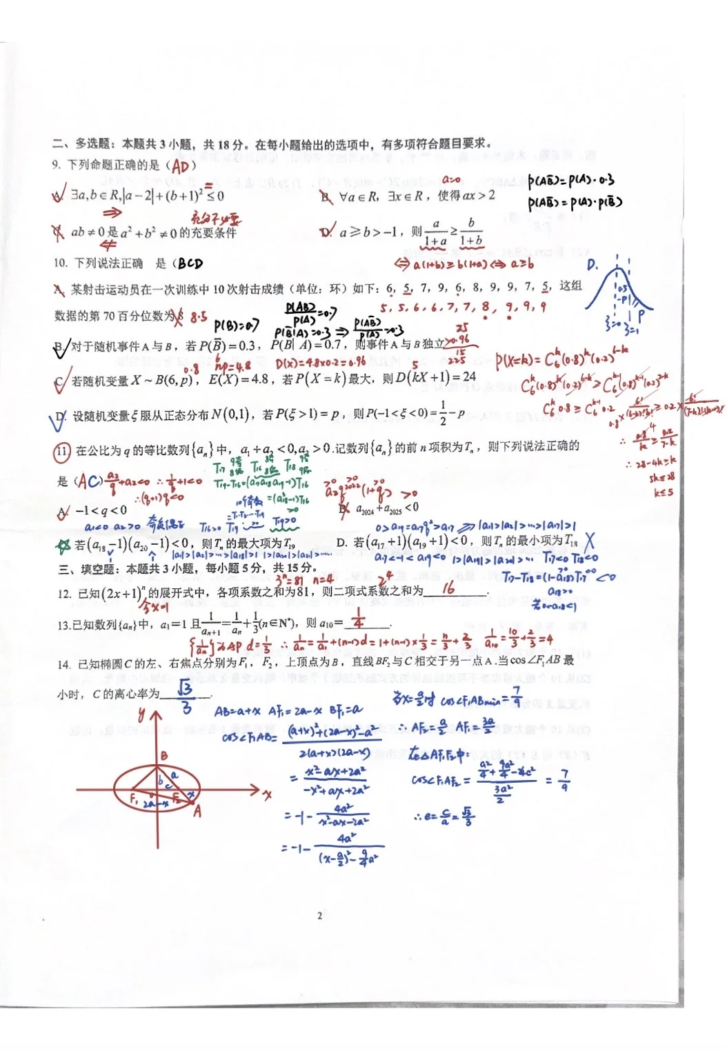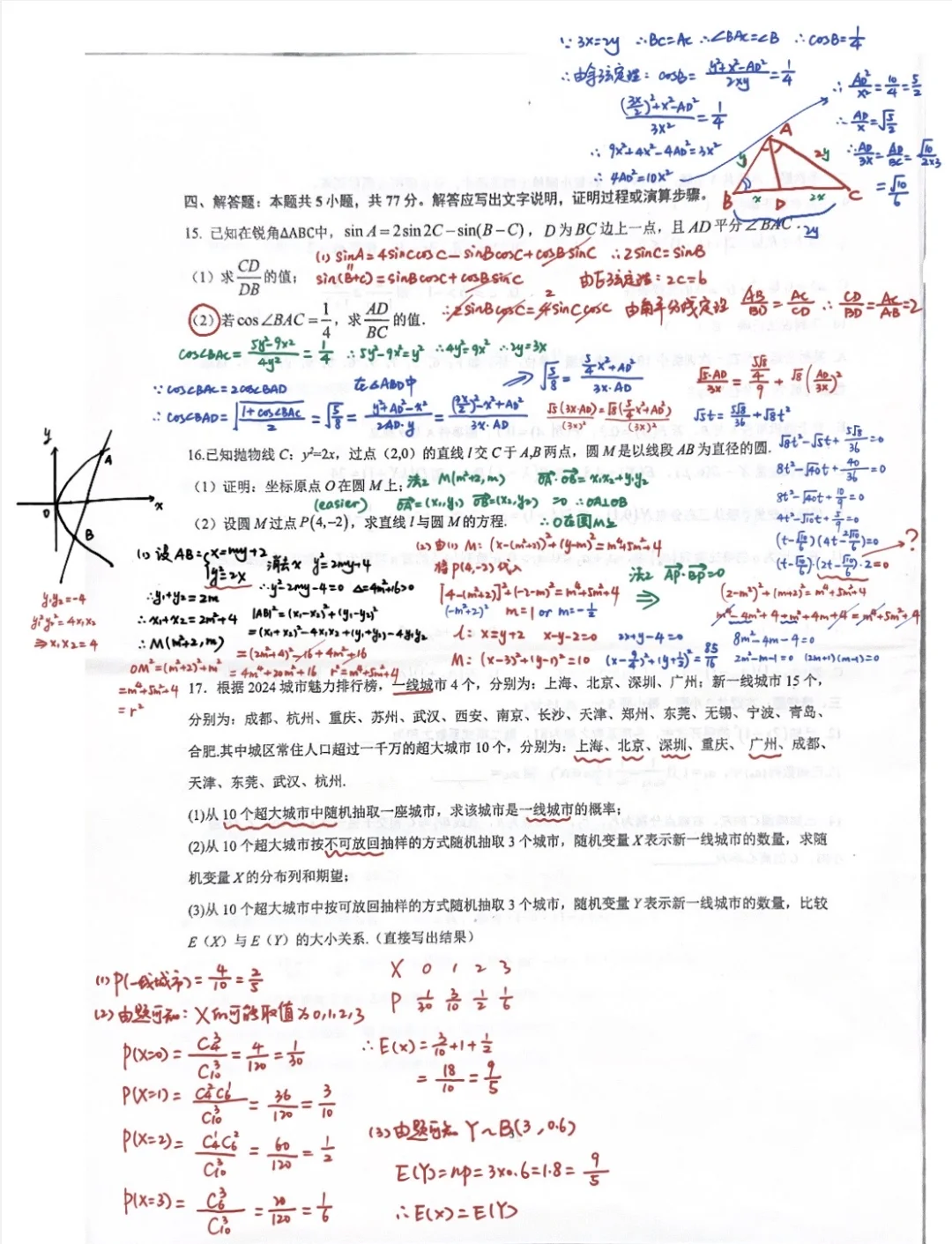 沉浸式做题~完成周老试卷(二),前面做起来很顺,但是15题第二问卡了一下下,用另一种方法就做出了两个答案,打了一个❓,脑袋好疼。又要至少花两节课评讲咯~