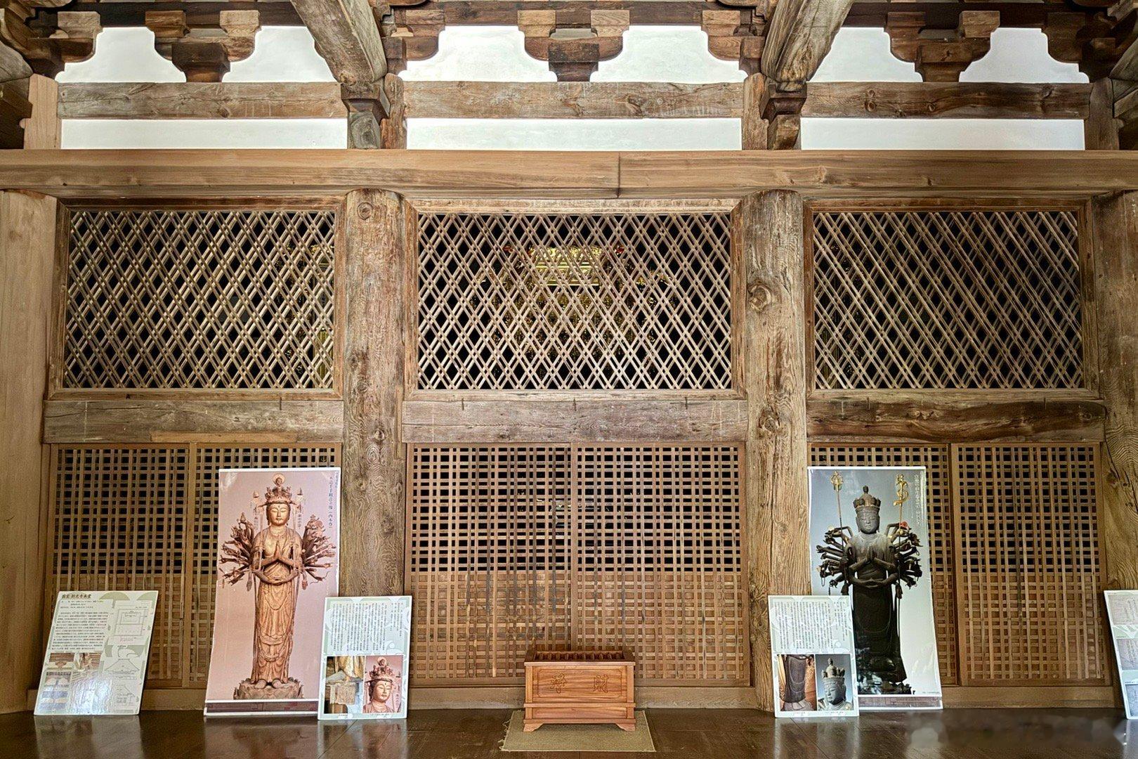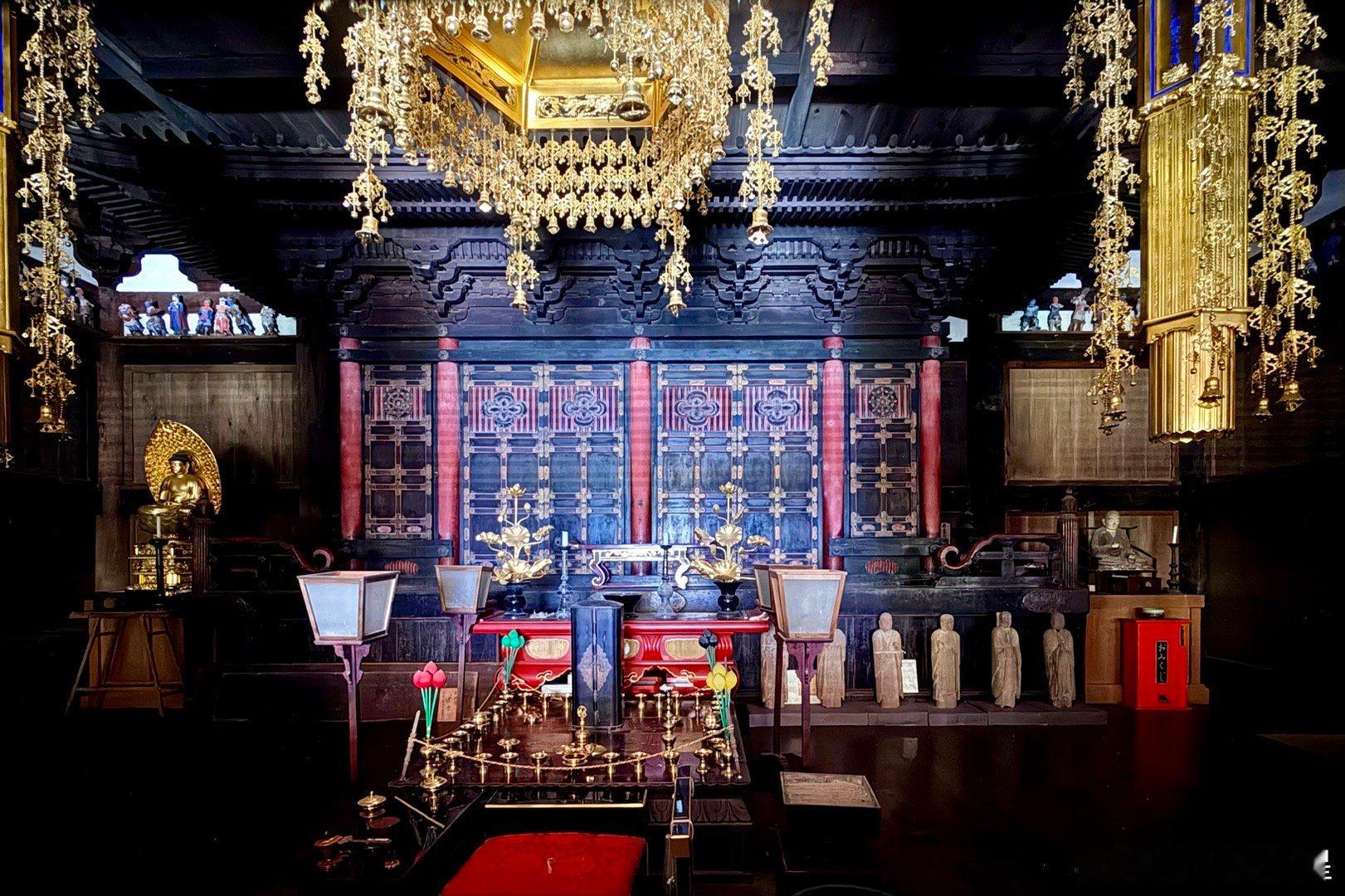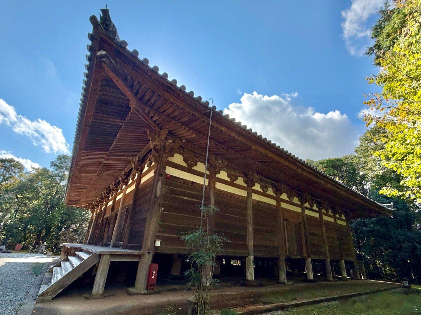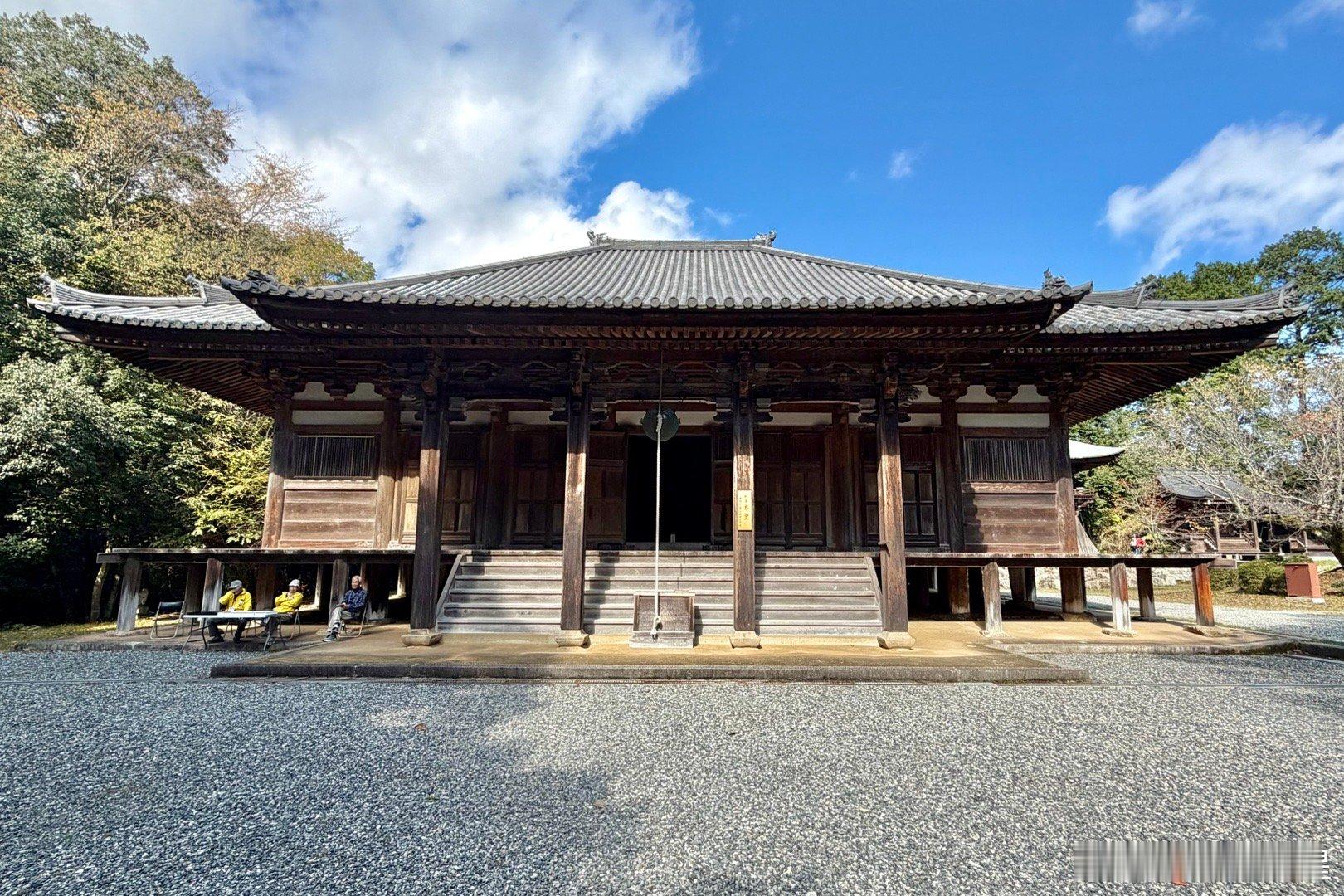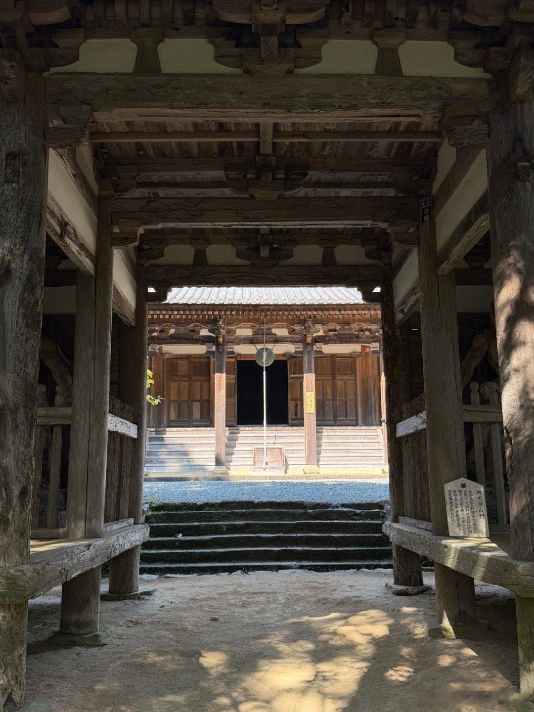 朝光寺。兵库县的国宝建筑。相传在公元651年,印度的法道仙人乘紫云来到日本,开创朝光寺。实际可考的是1189年在这个位置开始建寺,山门出去往下走,有个小瀑布,周围环境不错。本堂建筑是国宝,建于1413年,工程持续了十几年,1428年完成屋顶铺瓦。本尊11面千手观音来自京都的三十三间堂。这是个密宗寺庙,殿内分内阵和外阵。内阵可看而不可进,密佛本尊更是无法看到。建筑的主要风格是唐朝传来下来的“和样”,例如檐下的平行布椽等,加了一点宋代传来的“禅宗样”,例如门板的浅唐户等。是日本融合建筑“折衷样”的代表作之一。谢田的环球足迹