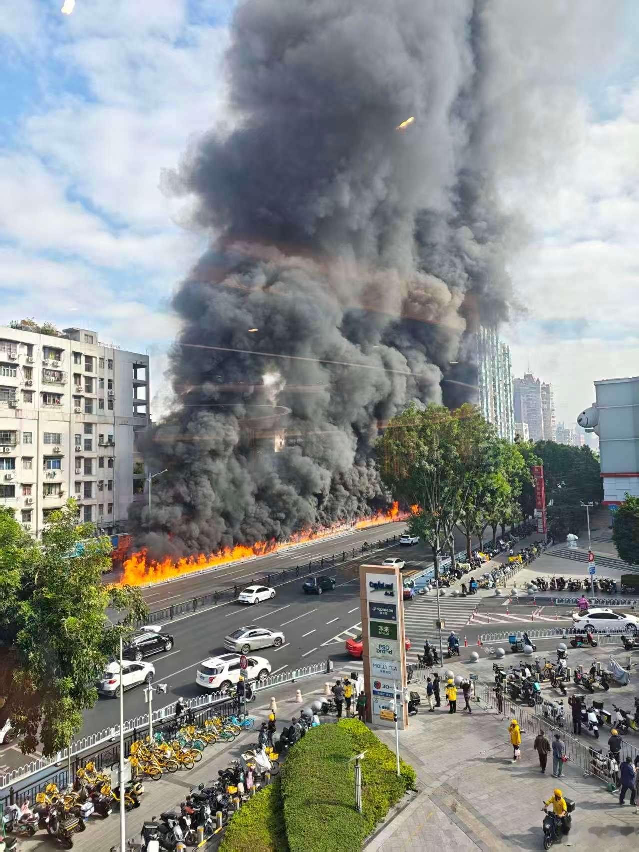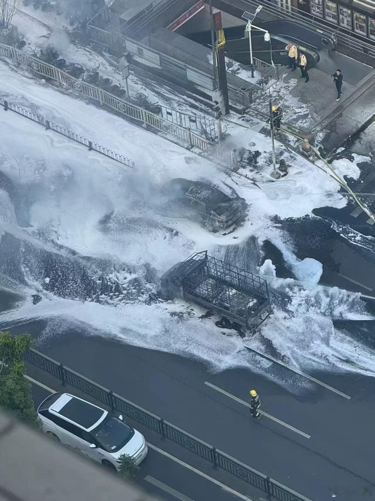 沙园地铁站这场火灾,感觉这台燃油货拉拉车上载的东西很有蹊跷,怎么能烧这么快?旁边的车和路边一串电鸡都遭殃了 广州沙园地铁站附近突发火情