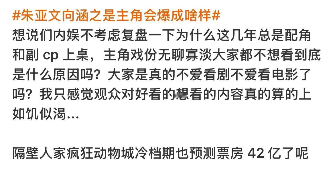 内娱观众 如饥似渴 我说cp感真的很奇妙,朱亚文向涵之之间产生的化学反应真的让观众疯狂上头,18岁年龄差的 CP,宿命感谁顶得住,台词直接爆梗。如今内娱好多副cp的上桌也引起更多讨论,并不是观众不想看不爱看,对于好的内容好的剧情观众真的很喜欢啊!