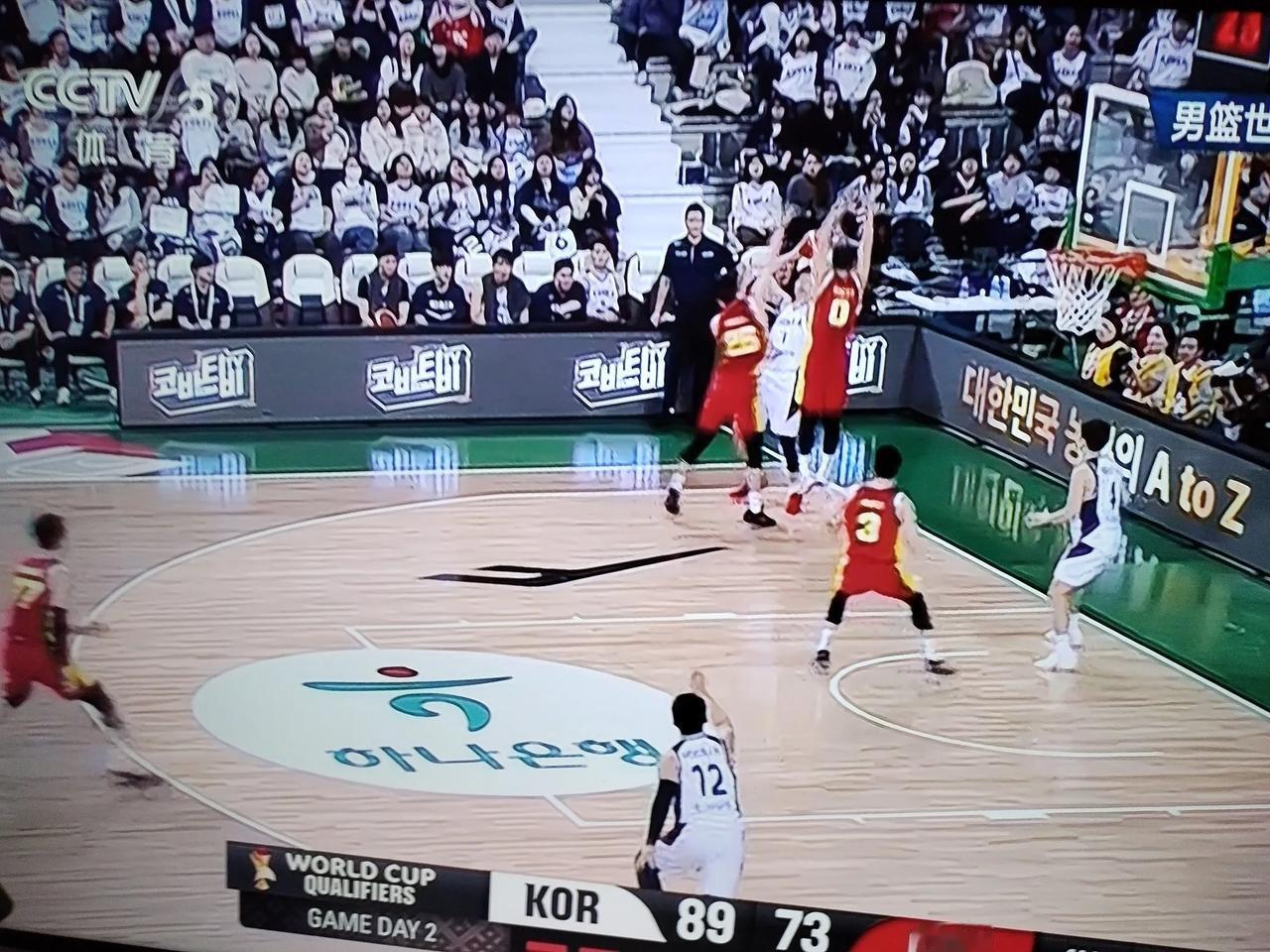 男篮世界杯亚洲区预选赛,中国男篮第一场与韩国队比赛在北京五棵松体育场,中国队主场,主力周琦、张镇麟归队。 这支亚洲杯刚获得亚军的中国男篮,怎么看也不像是刚拿了亚军的中国男篮,进攻乏力,周琦内线无统治力。韩国队反客为主,拼劲十足,压着中国队打。中国队以76:80输了。 12月1日下午六点,中国队在韩国原州体育馆客场对阵韩国队。 从第一节结束,中国队就落后韩国队10分之多,上半场结束,中国队落后韩国队20多分,最多在第三节落后韩国队30分。中国队落后这么多,想逆转韩国队不可能。中国队以76:90负于韩国队,小组赛两连败。 寄希望中国尽快调整状态,接下来的小组赛中打出气势,打出血性,打出水平。