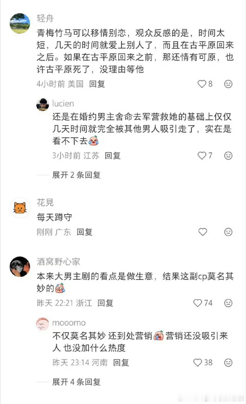 朱亚文向涵之是主角会爆成啥样磕的人基本没看剧,看切片就能嗑看剧的我,真觉得这副cp让剧情节奏慢下来了(一开始说村里女人被抓进起义军的军营,我就开始联想一些不好的历史,向涵之举起的手让我想到了《南京南京》里的江一燕。我带着这样的联想,纳闷向涵之怎么在这种绝境下还能爱上朱亚文我不理解。《大生意人》看到这里,不是滋味…就庆幸一开始给的悬念还没解开吧——有人设计陷害男主和男主爹的失踪。今晚不准备实时追更了,等男主和女二彻底拜拜,重新搞事业再看