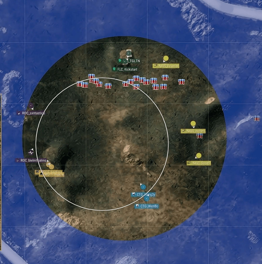 阶段8,随后ROC打倒WOLF两人,随后ROC打掉CTG一人,NAVI进攻FLC残编成功,但自己仅剩1人,不过随后CTG独狼在与NAVI独狼1V1的对阵过程中被淘汰,随后ROC两人进攻NAVI独狼轻松将其打掉,完成吃鸡。