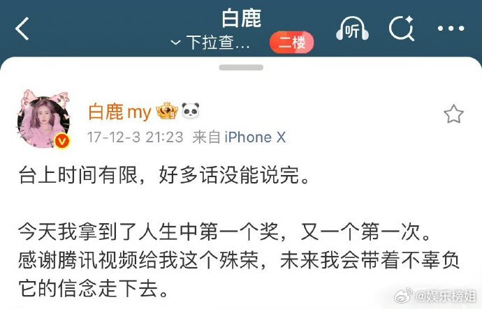 白鹿确定参加星光大赏对接确认白鹿参加腾讯星光大赏,上一次去星光大赏还是白鹿带着自己的第一部作品参加,并得了人生第一个奖,期待白鹿!
