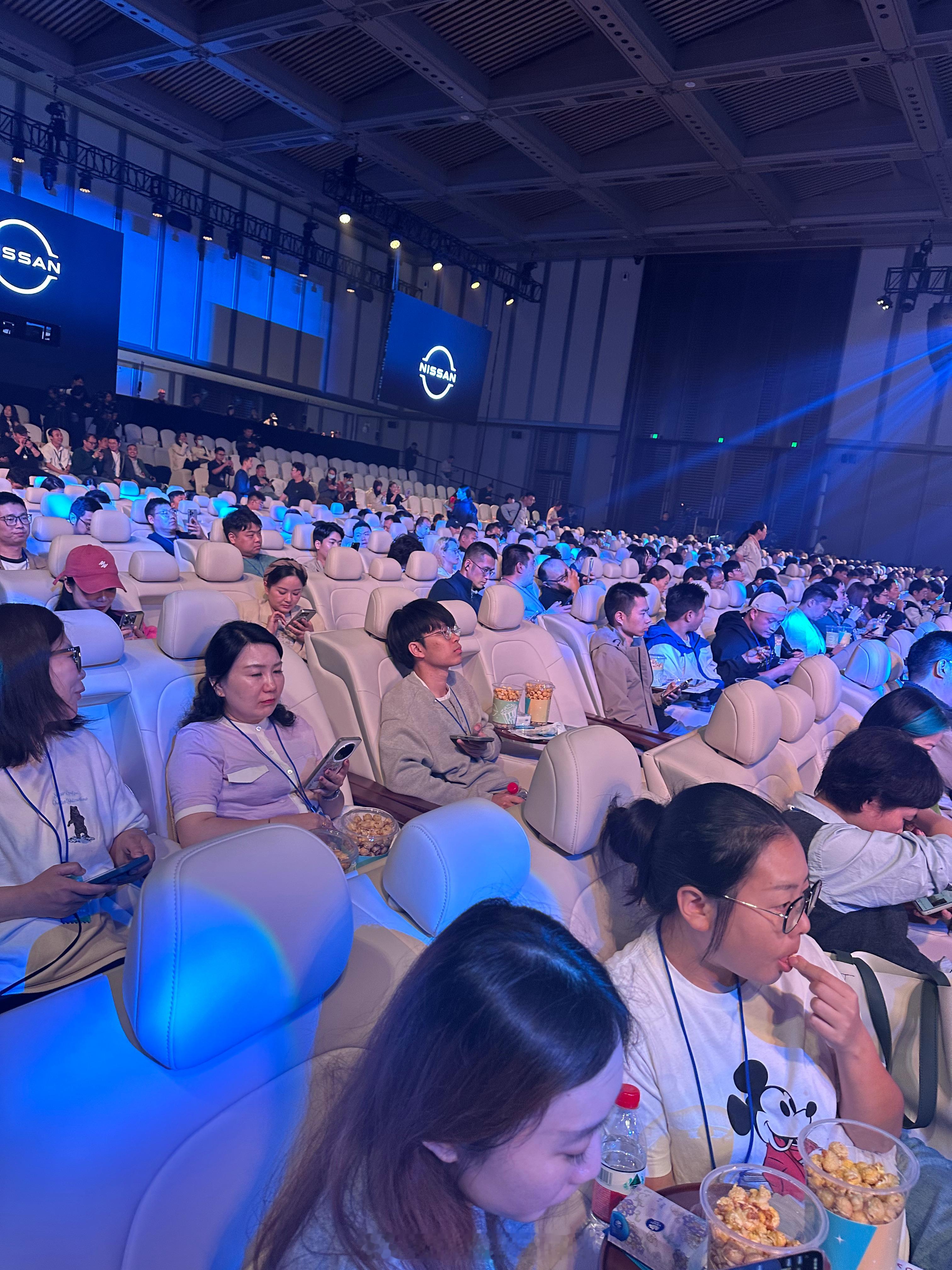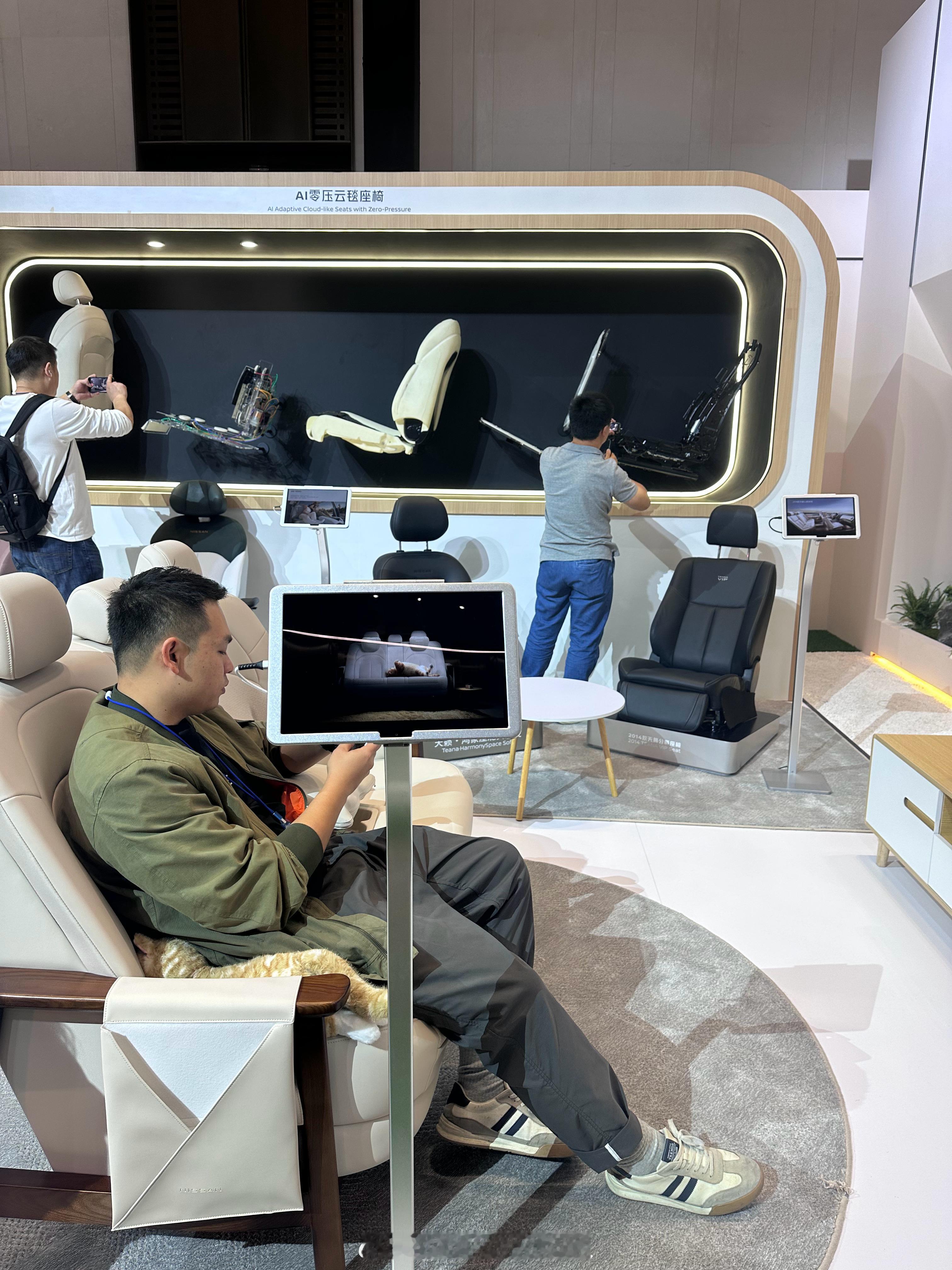 第一次参加一家沙发厂办的新车发布会。说实话,这“臀感”是无敌了!直接把车子后座三排直接搬到会场了,这创意绝了!中央扶手还能放下去,还有两个水杯架!牛🐮! 东风日产N6