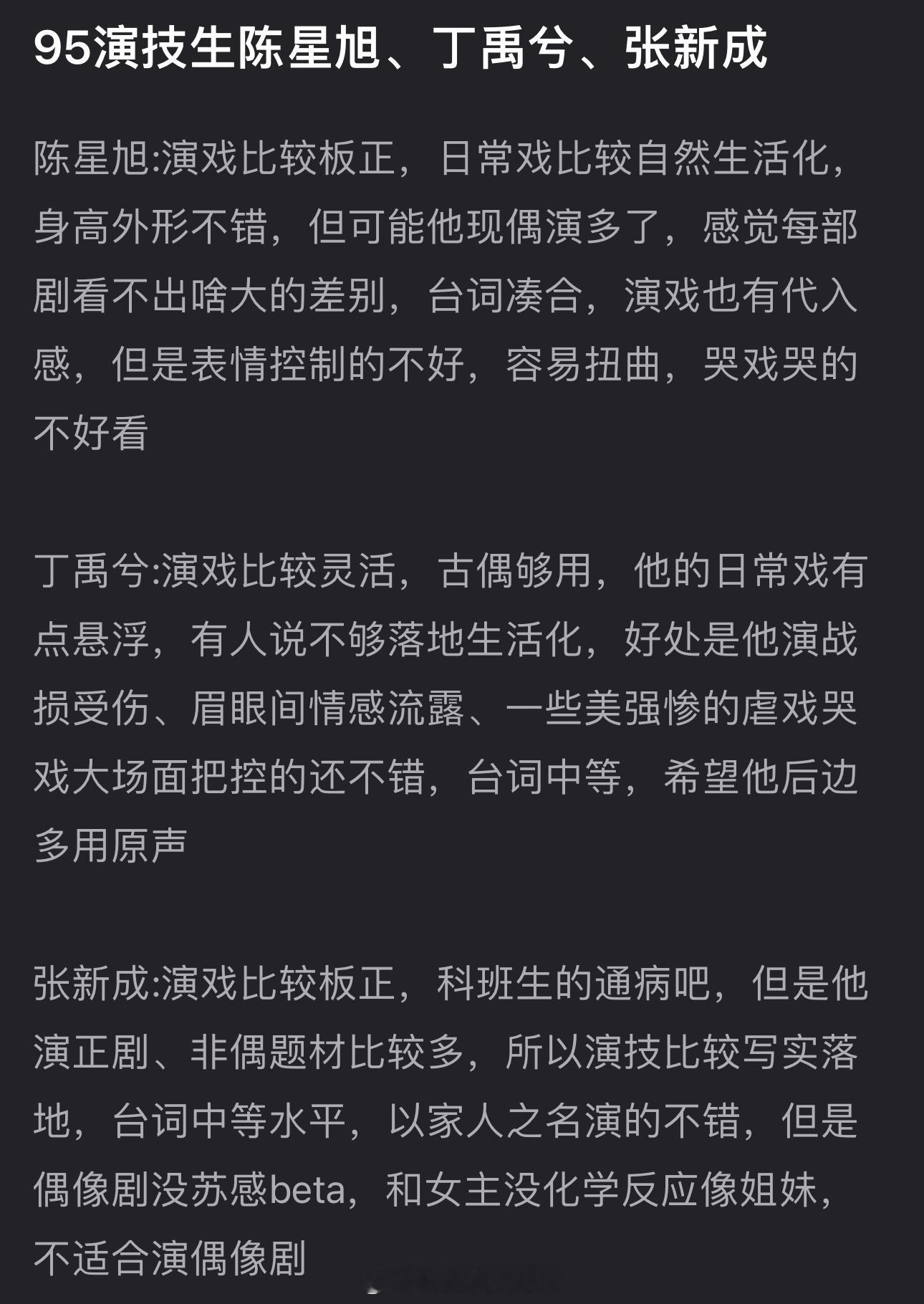 内娱95三大演技生盘点🈶,大家认同吗?陈星旭、丁禹兮、张新成