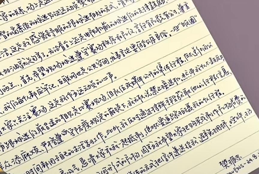 樊振东的优秀不仅仅来自于其精湛的球技! 赛场之外、训练之余, 其书法水平及唱歌功底也极为出彩。 樊振东书法如行云流水, 虽然赶不上集大家之所成, 但在一大众之中可称之为佳作。 站在体育生的角度而言, 更非一日之功。 樊振东日常写字功底, 更是让人眼前一亮, 字迹清新而又灵动。 若非清澈的心境, 又怎么呈现出如此脱俗的文字形式。 除此之外, 樊振东唱歌功底也相当不错, 堪称国乒百灵鸟, 无论是国语歌曲还是粤语歌曲都不在话下。 字如其人、 言如其行, 在樊振东身上表现得淋漓尽致。 这样优秀的运动员, 怎么让人不爱呢?!