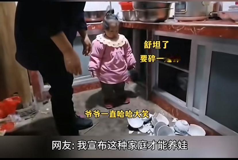 现在的小孩在蜜罐里成长!一小女孩把所有碗都给摔碎,爷爷看见哈哈大笑,还说没事。一网友说,我小时候打碎一个碗,父母气得打两巴掌。 唉!那时碗金贵,现在小孩金贵!