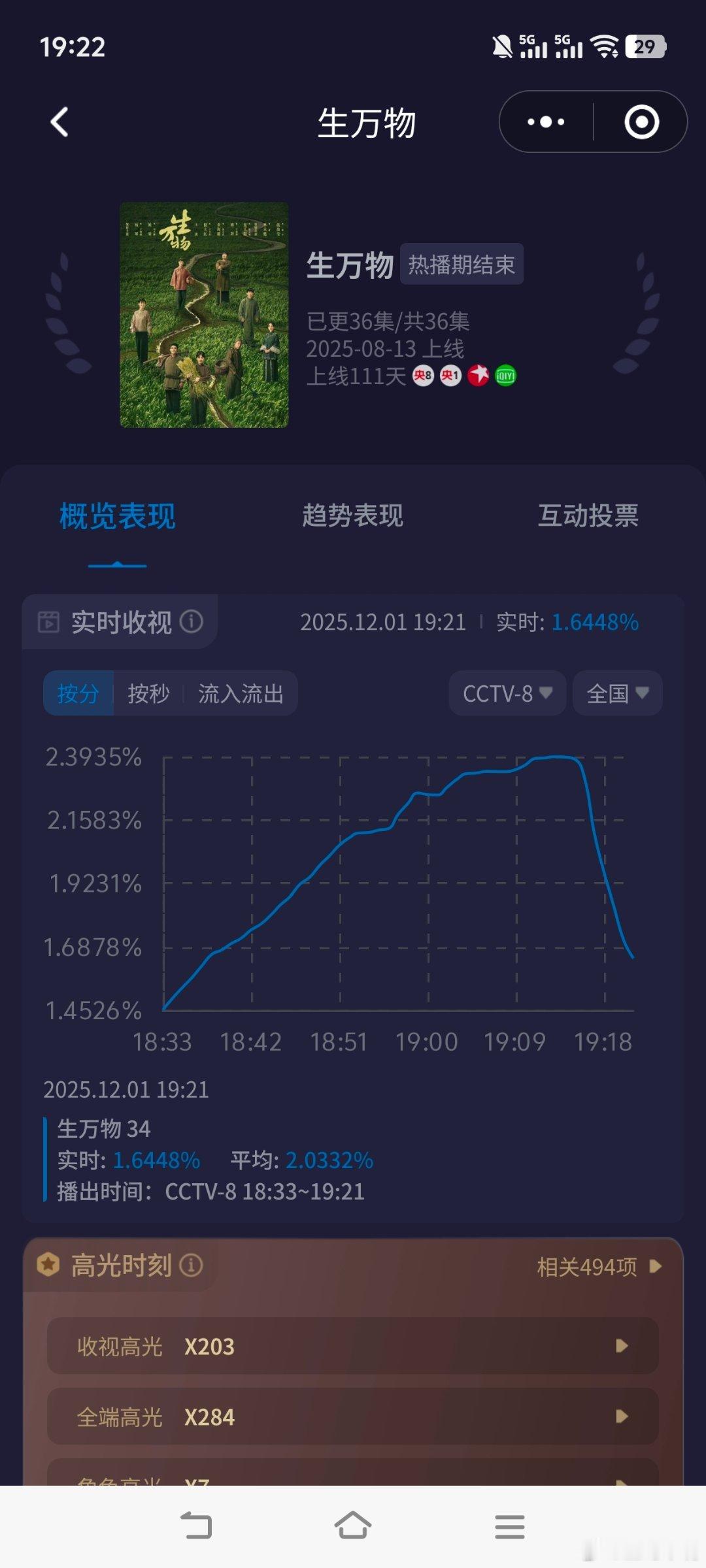 最期待提名白玉兰的电视剧当然是《生万物》啦!今年央八傍晚档最高收视剧集《生万物》酷云峰值2.3950,单集平均2.0332!勇夺央八2025年傍晚档最高峰值和最高单集!央八傍晚档最高峰值:1️⃣《生万物》 2.39502️⃣《绽放吧百合》2.3115央八傍晚档最高单集平均(18:30-19:21):1️⃣《生万物》 2.03322️⃣《绽放吧百合》1.9784