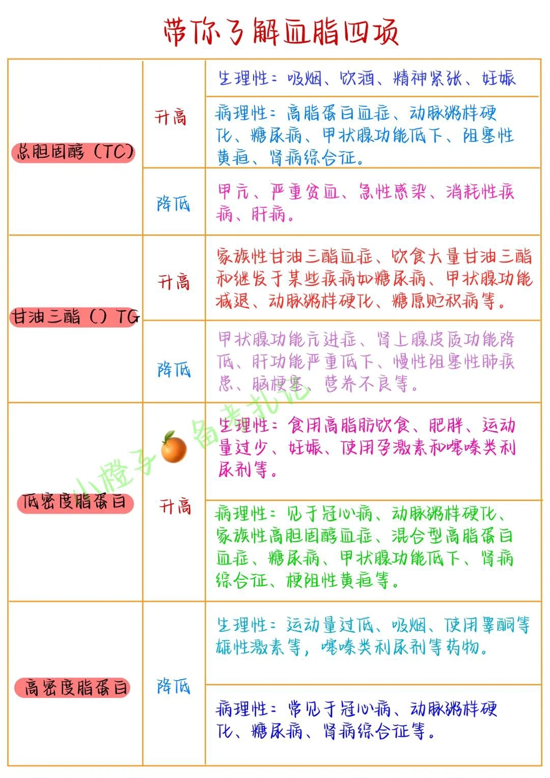 🌞血脂异常通常指血浆中胆固醇和/或甘油三酯、低密度脂蛋白胆固醇(LDL-C)升高,高密度脂蛋白胆固醇CHDL-C)降低,血浆中脂质以脂蛋白形式存在。