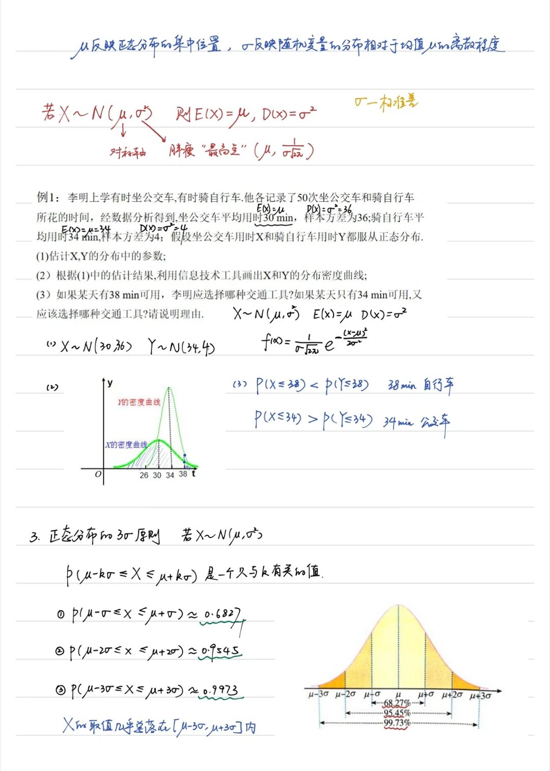 零诊范围的最后一节新课,其实还有5天我们就步入高三啦~对老师来说要经历最痛苦监考酷刑… 备这节内容,截了很多教材的图,这样备课本写得更好看啦~ 正态分布就三个主要内容,正态分布的定义,正态分布概率密度函数图象特征,3 原则(0.6827,0.9545,0.9973)。