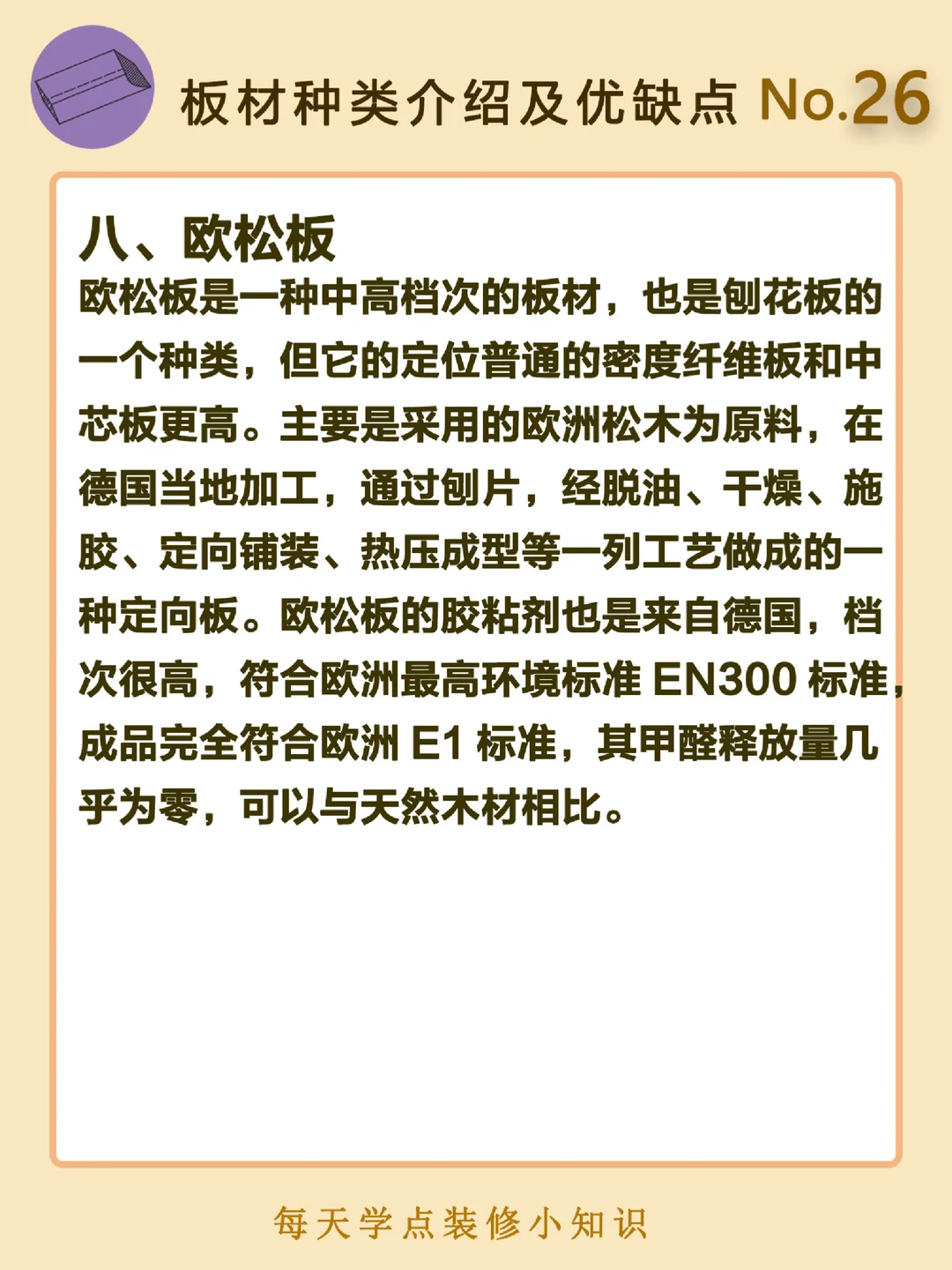 欧松板是一种中高档次的板材,也是刨花板的一个种类。