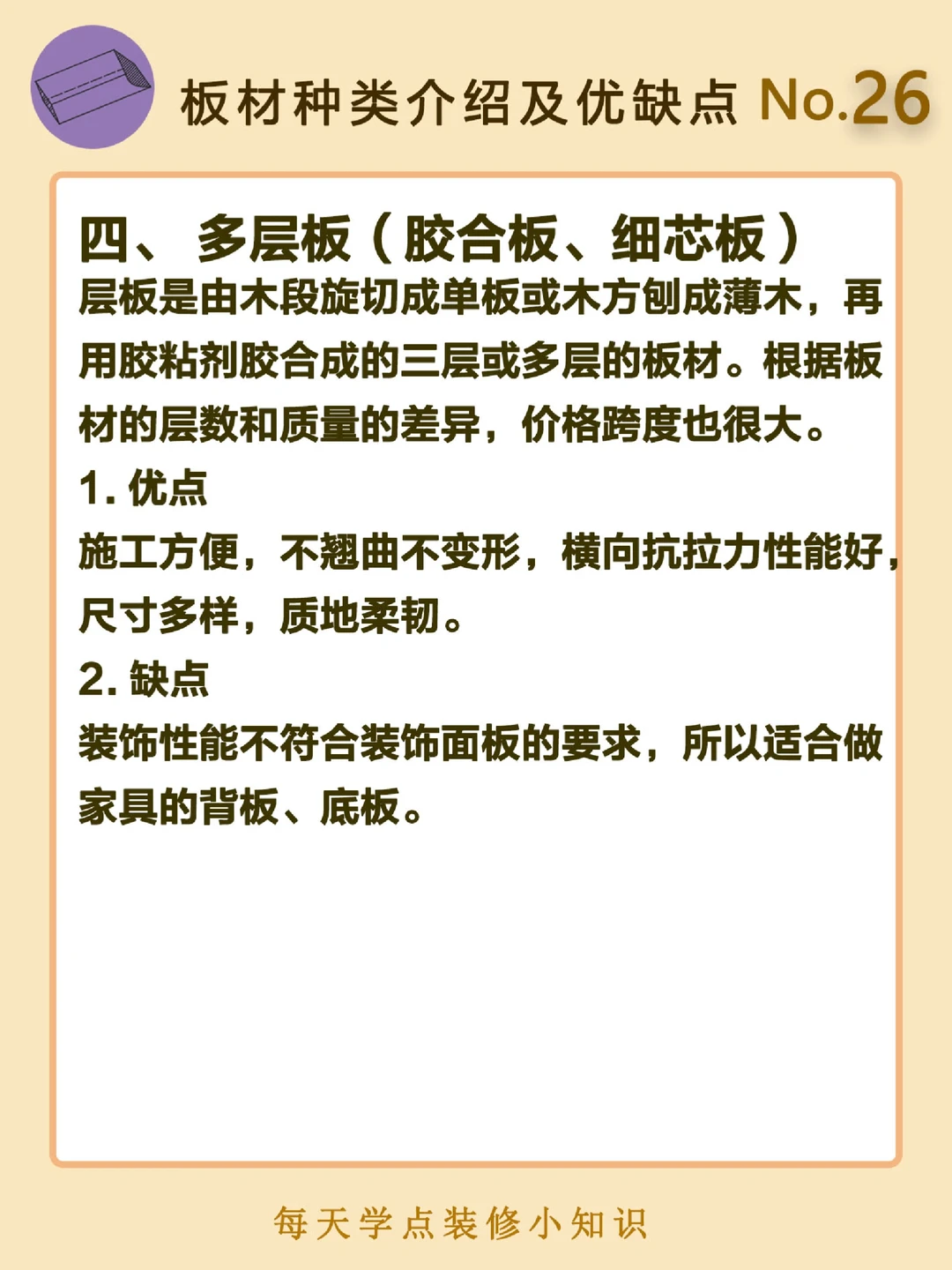 缺点:装饰性能不符合装饰面板的要求,所以适合做家具的背板、底板。