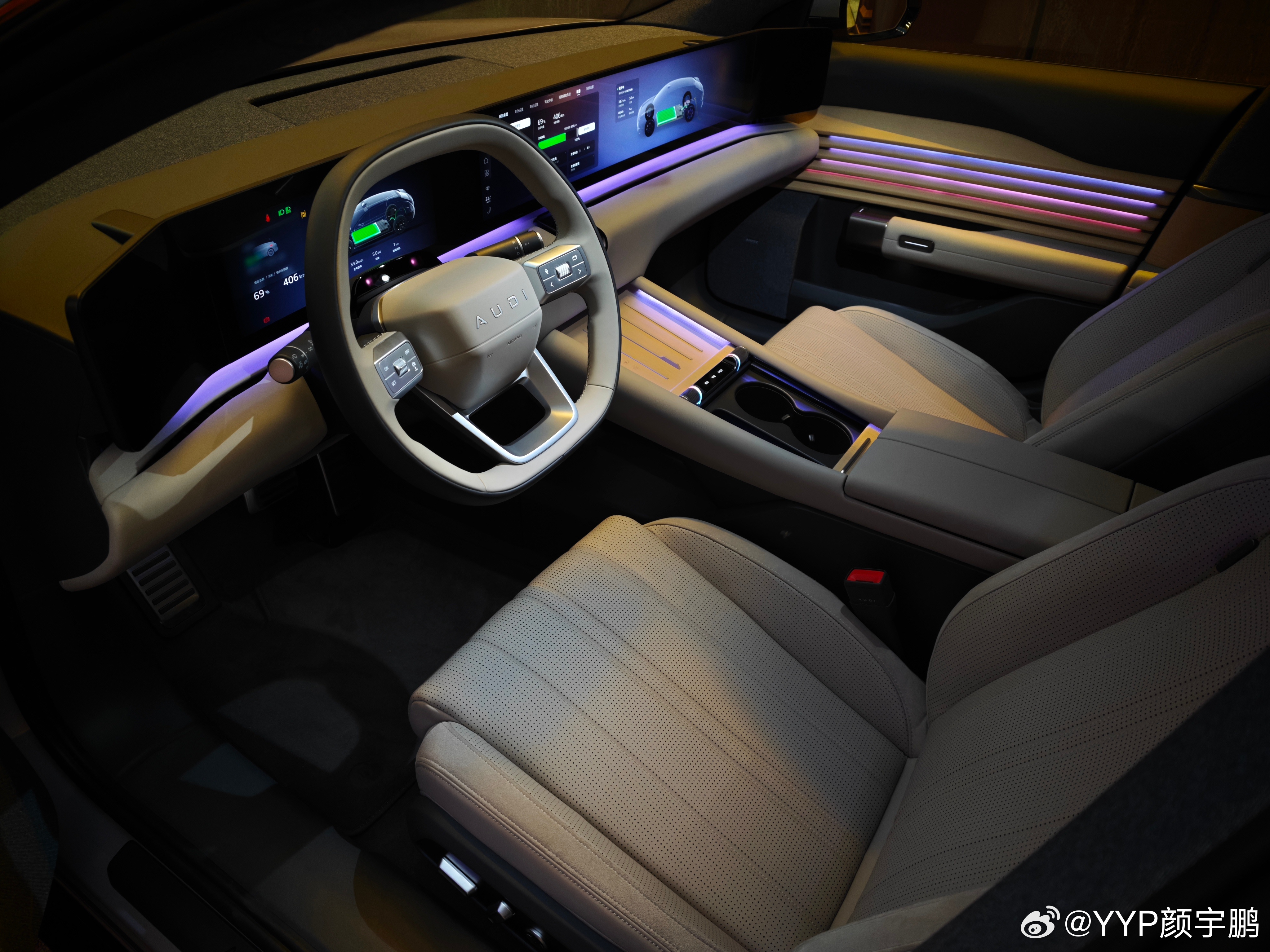 大胆的设计很多车有;绚丽的氛围灯很多车也有。这两个东西能融合得如此好的,真不多大家车的奥迪e5sportback