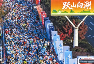 11月30日,以“会客天下游跑黄山”为主题的2025黄山马拉松比赛在安徽省黄山市黄山区鸣枪开跑,来自德国、俄罗斯、加拿大等14个国家及国内23个省市的万名马拉松爱好者踏上“跃山向湖”的山水赛道,在色彩缤纷的美丽画卷中诠释运动激情。