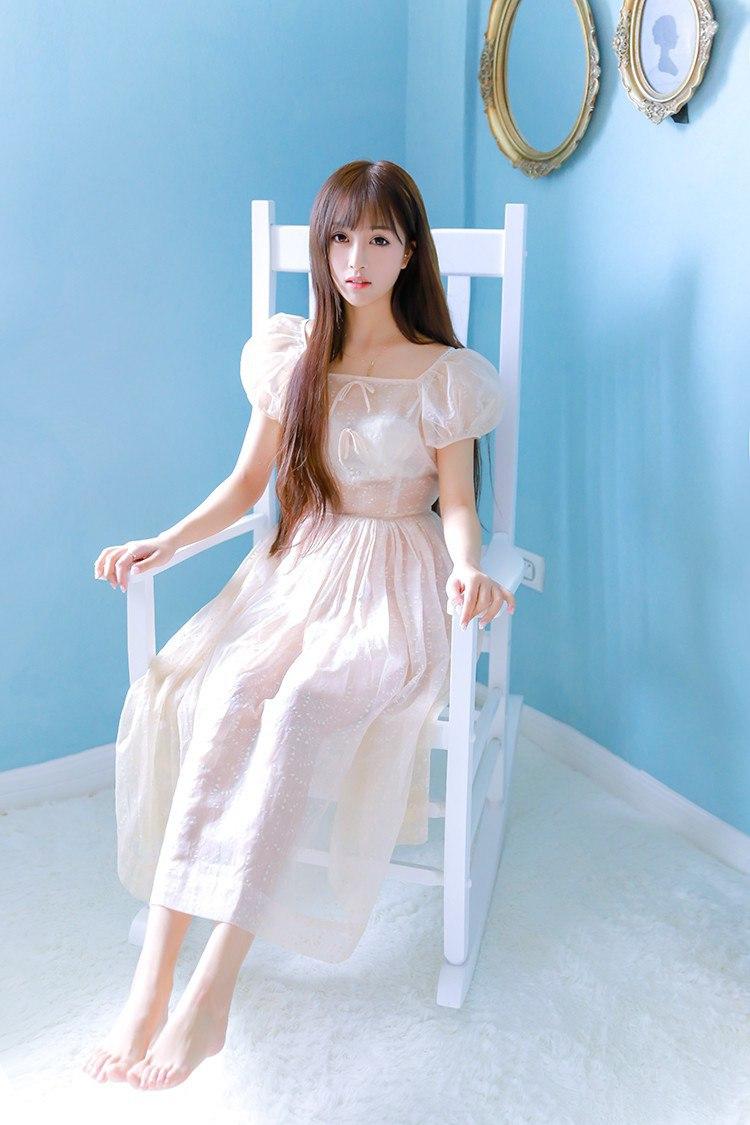 夏日清新少女,绿意盎然湖畔,白色蕾丝上衣,牛仔短裙,自然清新,甜美可人。街拍高