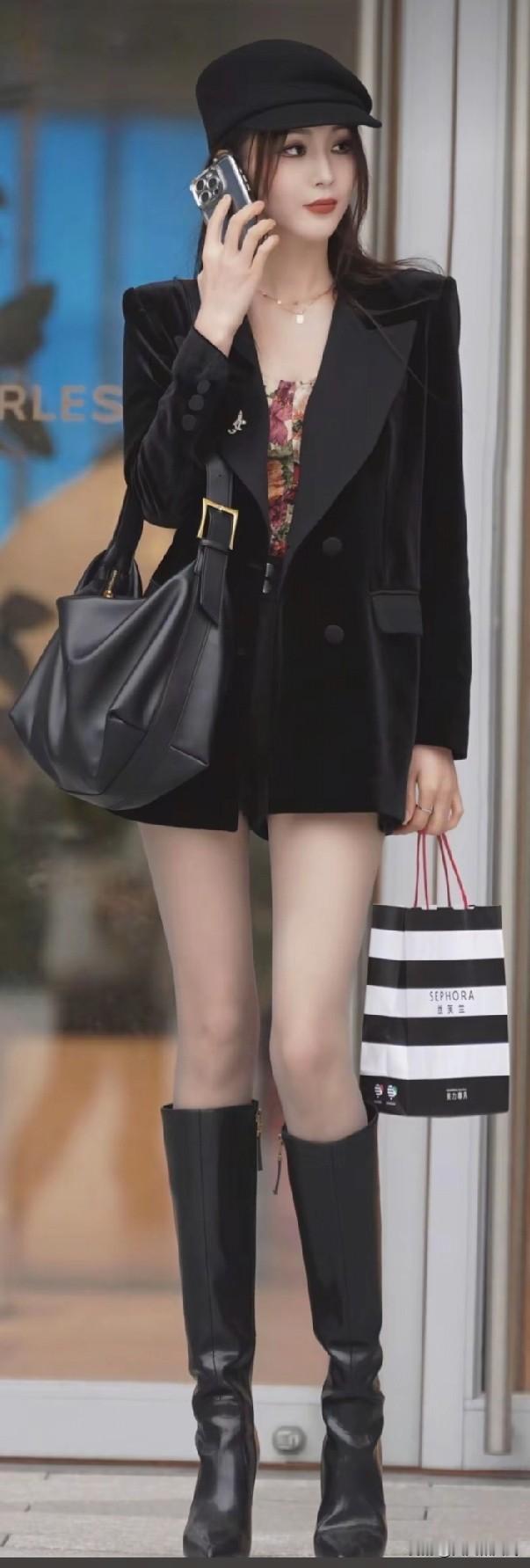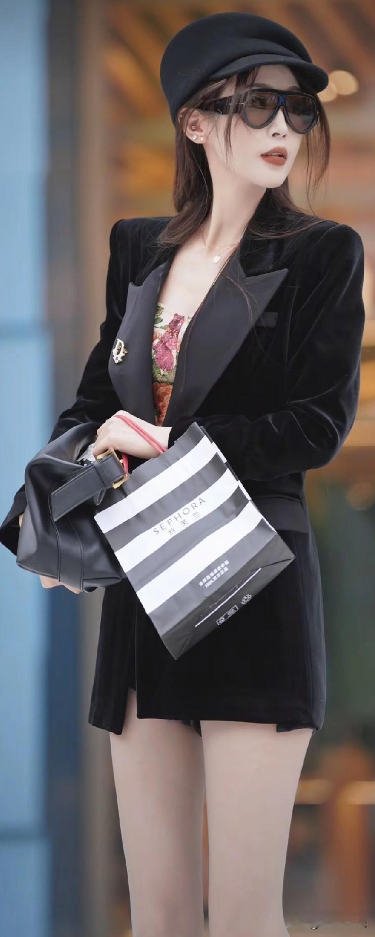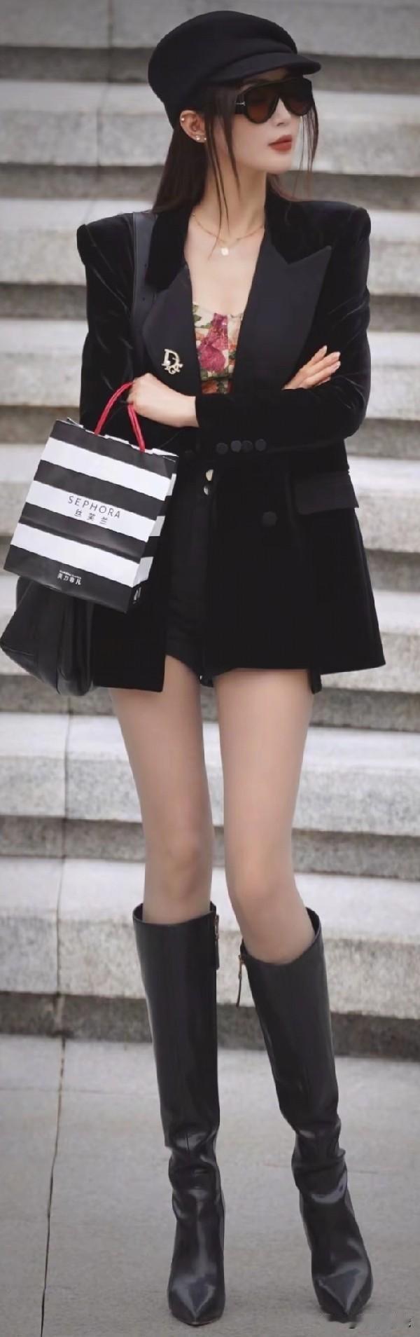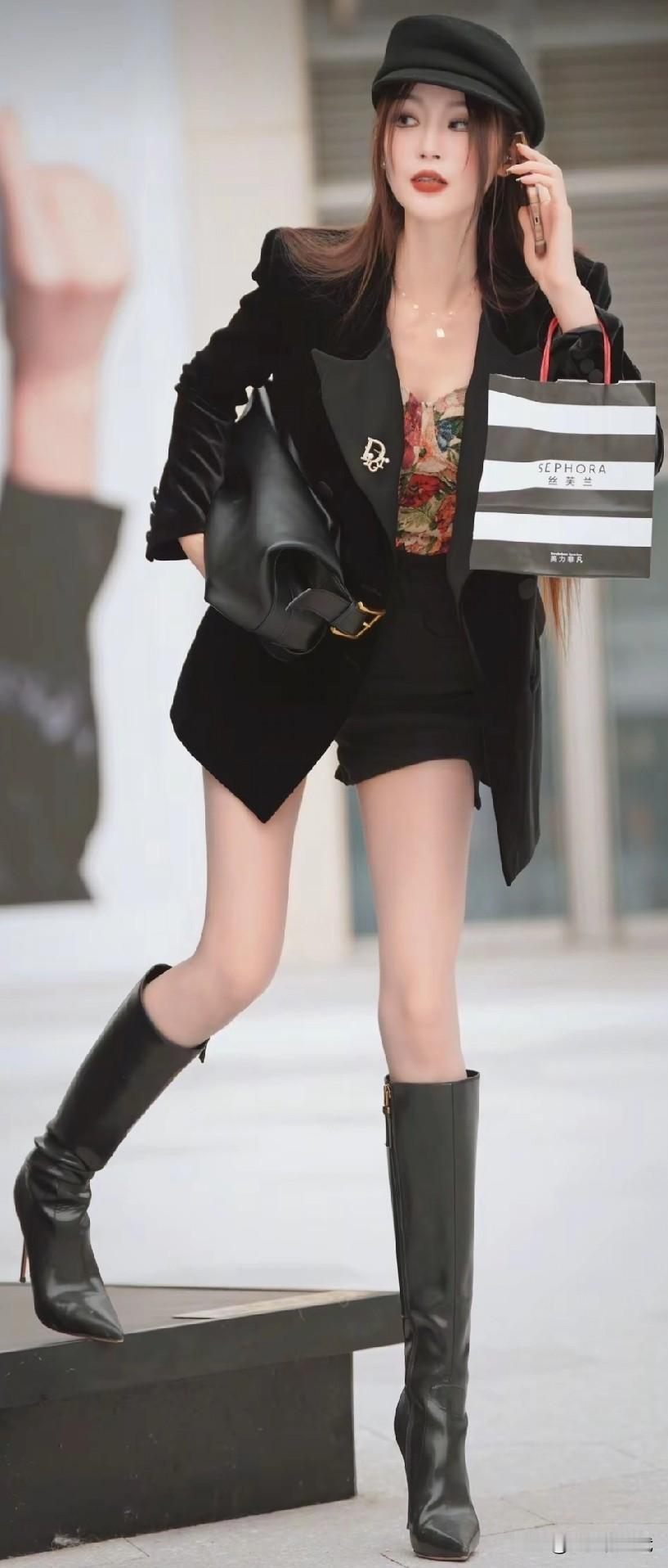 [看]借图打个招呼[看] 都市时尚风,黑西装搭配花衬衫,帅气又优雅!黑西装套装 黑西服穿搭 黑西装风格 黑裙西装风 黑色男友风衬衫 西装领花衬衫 黑衬衫风格 靴子丝袜美腿