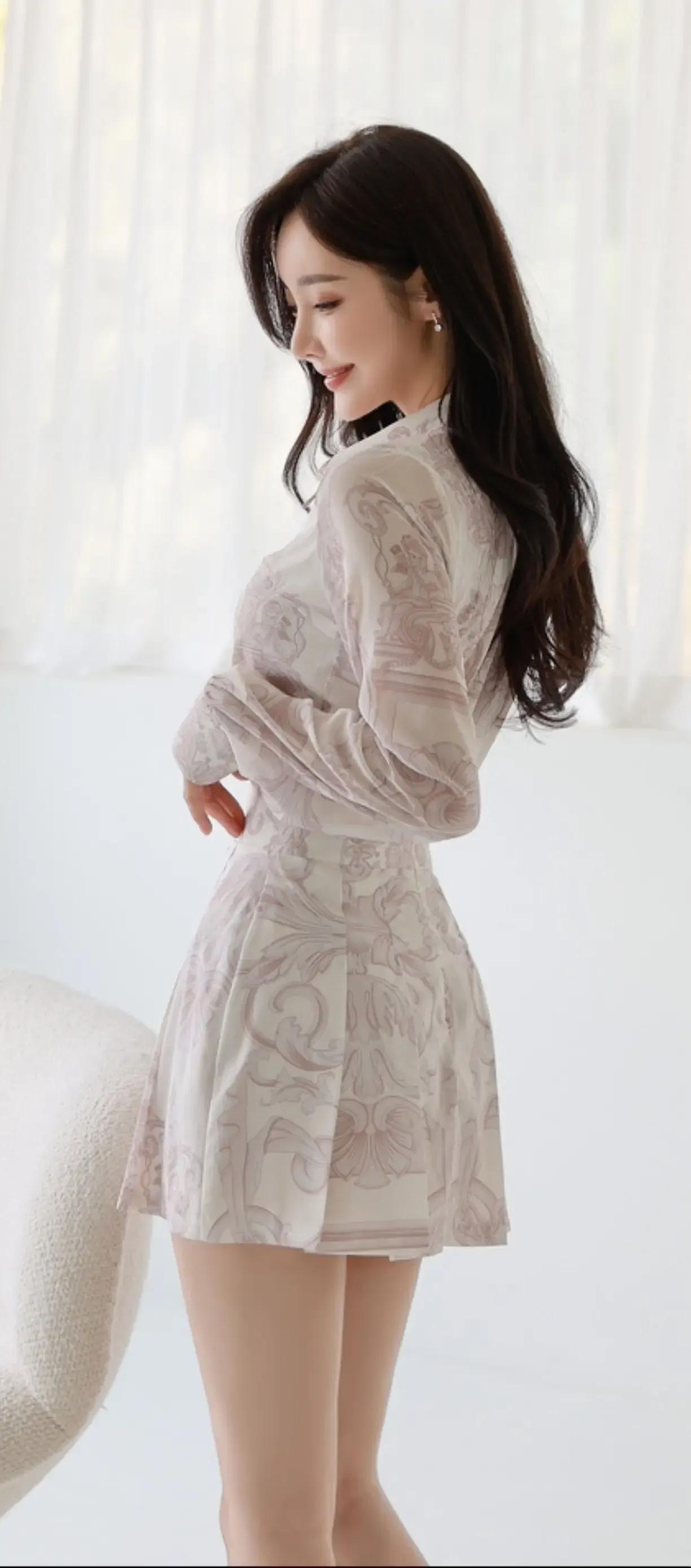 什么是真正的女性之美?浅蓝蕾丝裹着椰风里的清甜,珍珠流苏随步伐轻晃,连手里的橙