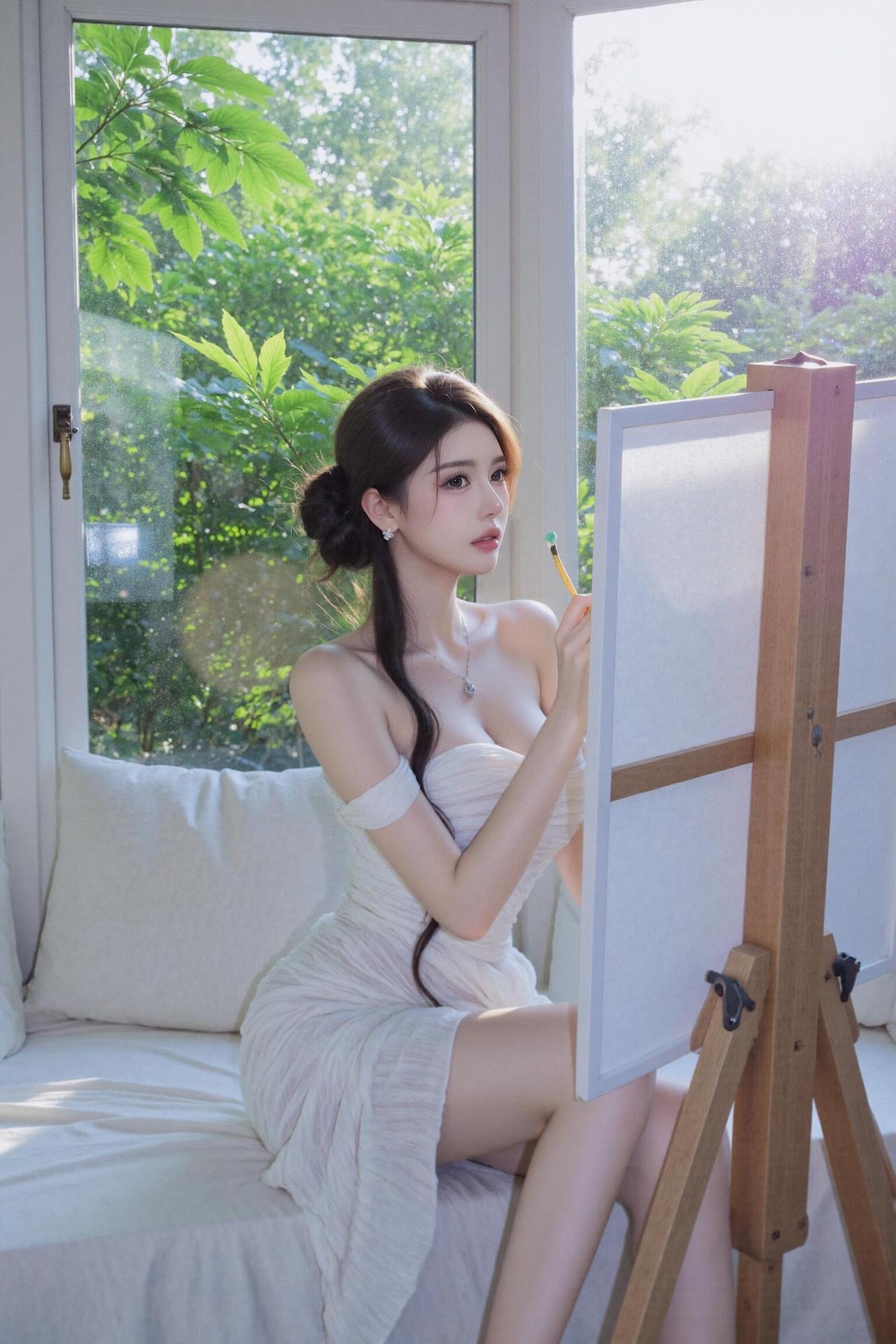 窗畔素衣轻,书卷伴画柔,光影裁得一帘幽。[微风][送自己一朵花]