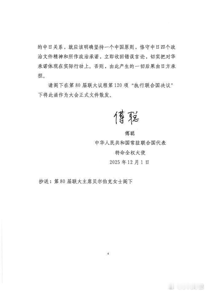 快讯!中国驻联合国大使傅聪:我今日再次致函联合国秘书长古特雷斯,针对日本常驻联合