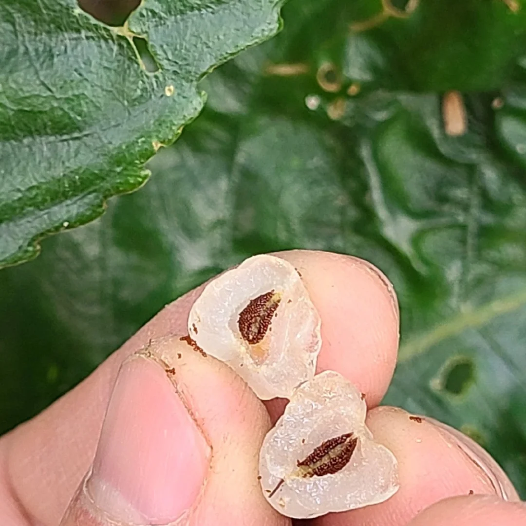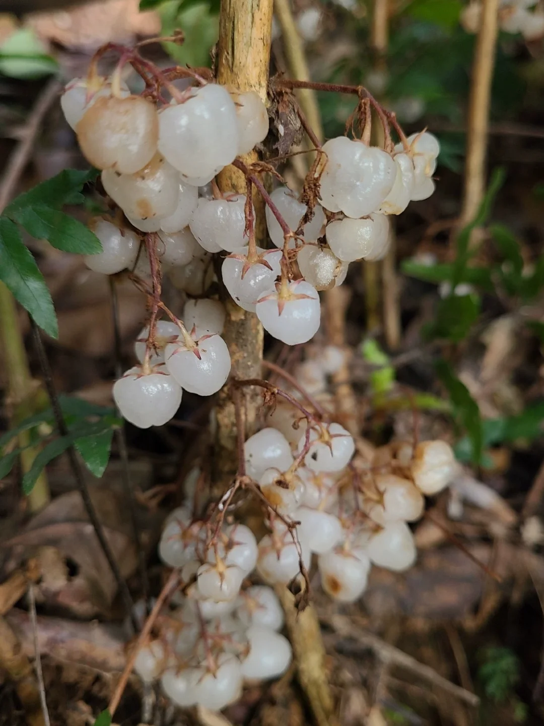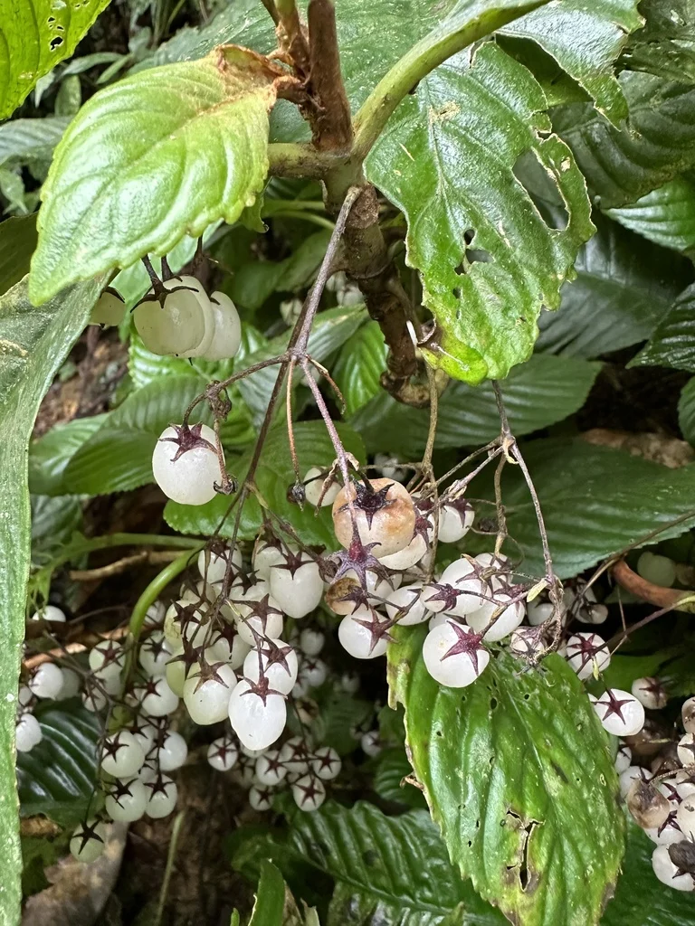 苦苣苔科线柱苣苔属 Rhynchotechum formosanum冠萼线柱苣苔 这个属的果子基本上都可以吃,样子也差不多 亚灌木。茎高0.7-2米。 花冠白色或带粉红色,浆果白色,宽卵球形,长5-6毫米。花期6-10月。 生于山谷林中或溪边阴湿处, 在云南,四川,广西及广东,福建南部,越南、老挝、泰国、缅甸及印度东北部也有分布。