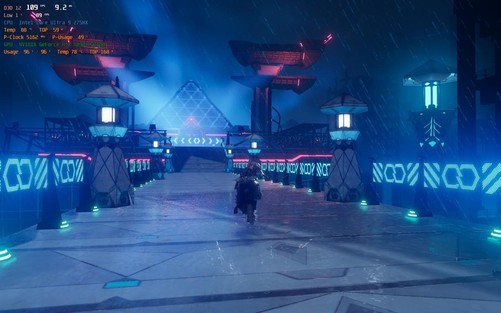 《忍者龙剑传4》是近期新发布的忍龙系列正统续作,在硬核动作基础上简化了操作难度,吸引粉丝的同时也很适合新玩家入坑。在4K分辨率、最高画质、DLSS平衡模式下,实测画面平均流畅度可以达到88fps,另外1%LOW帧也能够达到60fps,流畅无卡顿、无延迟的画面对于这种高速硬核动作游戏来说非常重要。