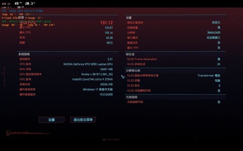 雷蛇灵刃182025在开启2X、3X以及4X多帧生成后,平均帧率分别为58fps、83fps以及106fps,画面运行流畅。不过实际体验下来,由于3X、4X多帧生成开启后,会有3-4帧画面是由AI计算生成,而非游戏原生帧画面,所以对帧数敏感的动作游戏玩家建议开到2X帧生成即可。