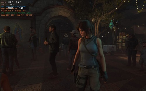 《古墓丽影:暗影》在当前的硬件环境下已经能够非常流畅地运行,而测试的主要目的在于为大家提供一个纵向参考,实测4K分辨率、最高画质、DLSS平衡模式,平均帧数164fps,运行极为流畅。