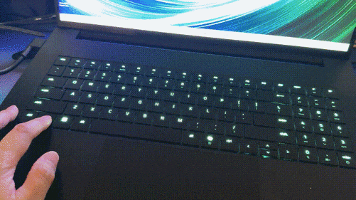 雷蛇灵刃182025的第一个巧思设计体现在键盘区域,当用户按下Shift、Fn等复合功能键的时候,无相关功能的按键背光会熄灭,而有功能的按键则会继续保持亮起或者进行切换,这一设计可以说是完美解决了用户使用组合快捷键不熟悉的问题。