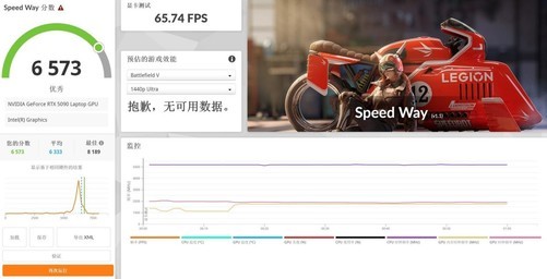 SpeedWayDX12平均帧数为65.74fps,图形性能评分6573;