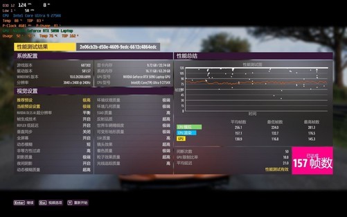《极限竞速:地平线5》我们同样采用了4K分辨率进行测试,画质设定为极端,最终平均帧率达到157fps,依旧达到了极高的画面流畅度。