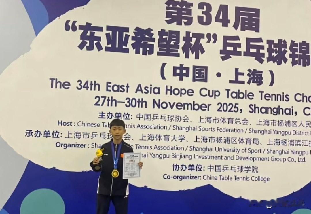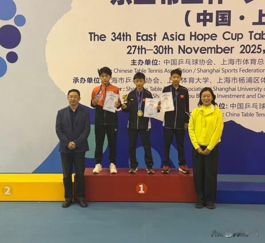 2025年第三十四届东亚希望杯单打颁奖仪式图集📷 男单冠军🏆:张兆格🇨🇳