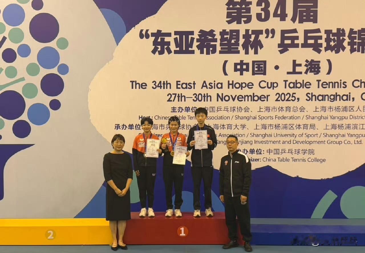 2025年第三十四届东亚希望杯单打颁奖仪式图集📷 男单冠军🏆:张兆格🇨🇳 女单冠军🏆:松岛美空🇯🇵 2025.12.1