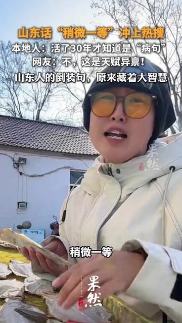 活了28年,今天直接懵圈! 早上刚跟我妈通电话,她喊“你稍微一等,我装桃酥”,转头就刷到热搜:咱山东人天天说的“稍微一等”,居然是病句? 我握着手机手都抖,赶紧翻聊天记录,昨天刚给朋友发“稍微一等哈,找钥匙”,瞬间笑出猪叫! 想起买早餐时,老板举油饼喊“稍微一等”;等公交时,朋友拽我“稍微一等,末班车没到”;奶奶打电话催“稍微一等,拿腌萝卜”。 这些刻在DNA里的话,居然语法不对?“稍微”是程度副词(比如“稍微等一下”),“一等”是数量短语(比如“等一等”),俩放一起其实不搭。 可那又怎么样?我妈说“稍微一等”,是怕我没带够吃的;老板说,是多塞个茶叶蛋;保安大爷喊,是帮我拦单元门。 这哪是病句啊?是山东人热乎到骨子里的人情味儿! 山东老乡们,你们第一次听说时,是不是先翻聊天记录?外地朋友听过“稍微一等”吗?来聊聊最可爱的方言梗~