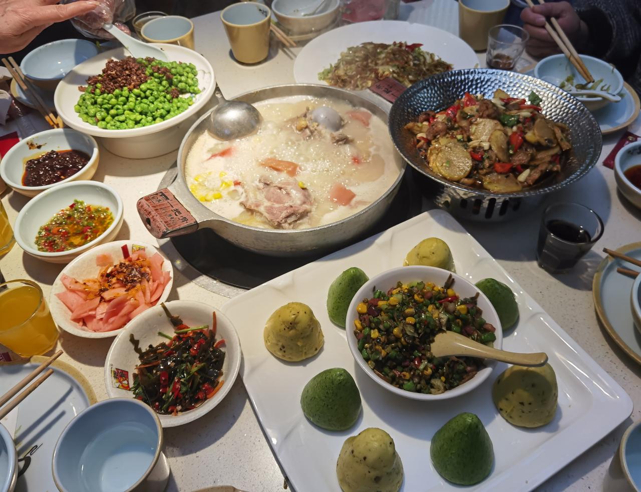 川菜馆一把骨巴适得板 成都余氏一把骨,闻名遐迩。它主营以猪棒骨为核心的骨头类菜品。涵盖大骨头汤锅,炭火,干锅等9类系统,就菜单上就有150种川系融合菜品,看得人是眼花缭乱。 昨晚家人相聚,到川菜馆一把骨,去品尝了地道川味特色菜。听说该品牌荣获央视《消费主张》等栏目多次报道,还是国际美食之都代言品牌。 我是第一次来品尝一把骨,酱骨头是店里的招牌特色(18元一个)家人每人啃一个酱香骨头。我们还点了大骨头菌菇汤锅,干锅及炒菜等,味道鲜香味美,让人唇齿留香。 一把骨,不仅是成都的一道美食,更是家人温馨的聚集地。家人在休闲时光,品尝美食,举杯言欢,共祝大家冬日康安……[赞][赞][福][福][祈祷][祈祷]