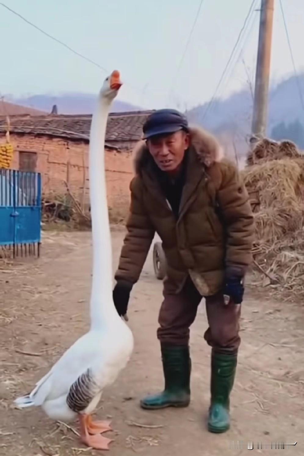 破防了!两米高的“鹅界巨人”陪伴大爷养老,这样的日子太治愈了! 刷到大爷和两米多高的“鹅界巨人”同框的画面,我的心瞬间被暖化! 农村的快乐不用靠花钱消遣,一只通人性的大鹅,便能让平淡的日子充满了烟火气。 它跟着大爷在土路上慢悠悠晃悠、缓缓踱步,守在院子里充当“门卫”,像一位沉默却靠谱的老伙计,寸步不离地陪着大爷。 这里没有城市的车水马龙,只有鸡鸭鹅犬绕着转,风里飘着的是晒暖的干草香,时光慢得让人倍感安心。 这份“有鹅相伴,岁月静好”的小确幸,谁看了能不心生羡慕呢! 农家走地大鹅