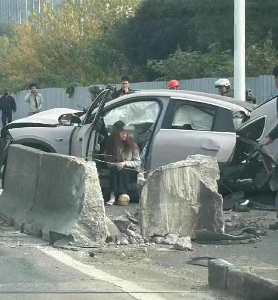 【蔚来EC6碰撞】虽然车两截了,但是没起火,车门能正常开启,也算可以了,你们觉得