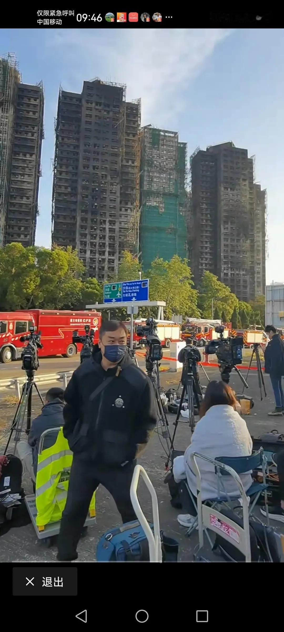 香港这个这次火灾的楼房 怎么还有那么多人在下面图三中的,是不是在直播啊!不清楚,