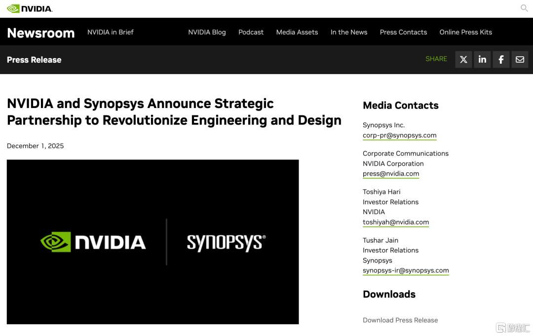 当地时间12月1日,英伟达宣布与全球EDA巨头新思科技(Synopsys)达成战略合作,并投资20亿美元。
