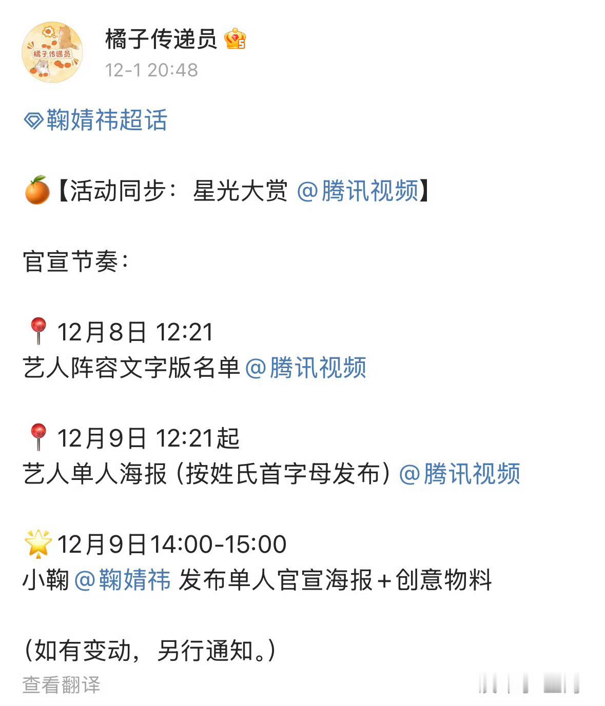 鞠婧祎对接确认出席星光大赏鞠婧祎要去星光大赏了 鞠婧祎要参加今年的星光大赏了!!