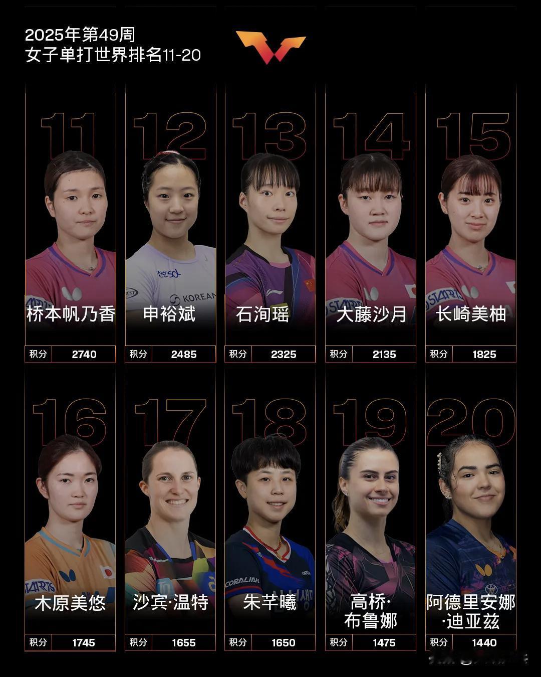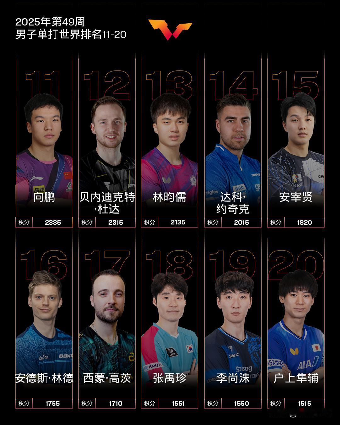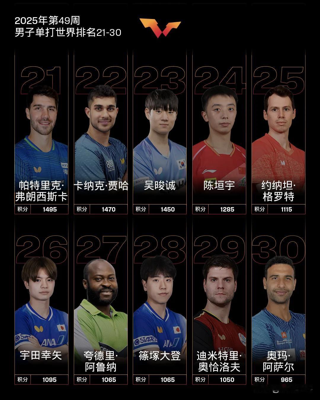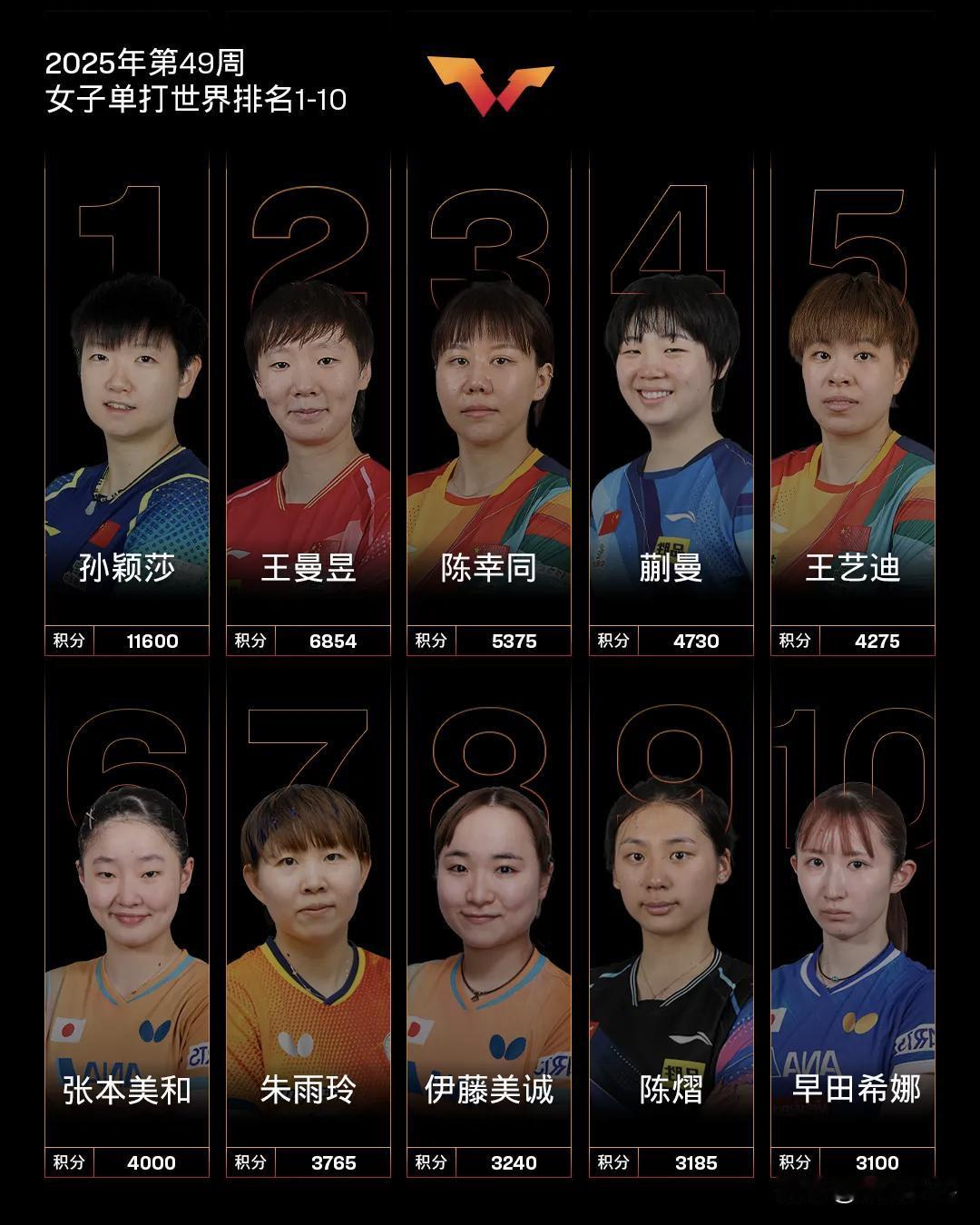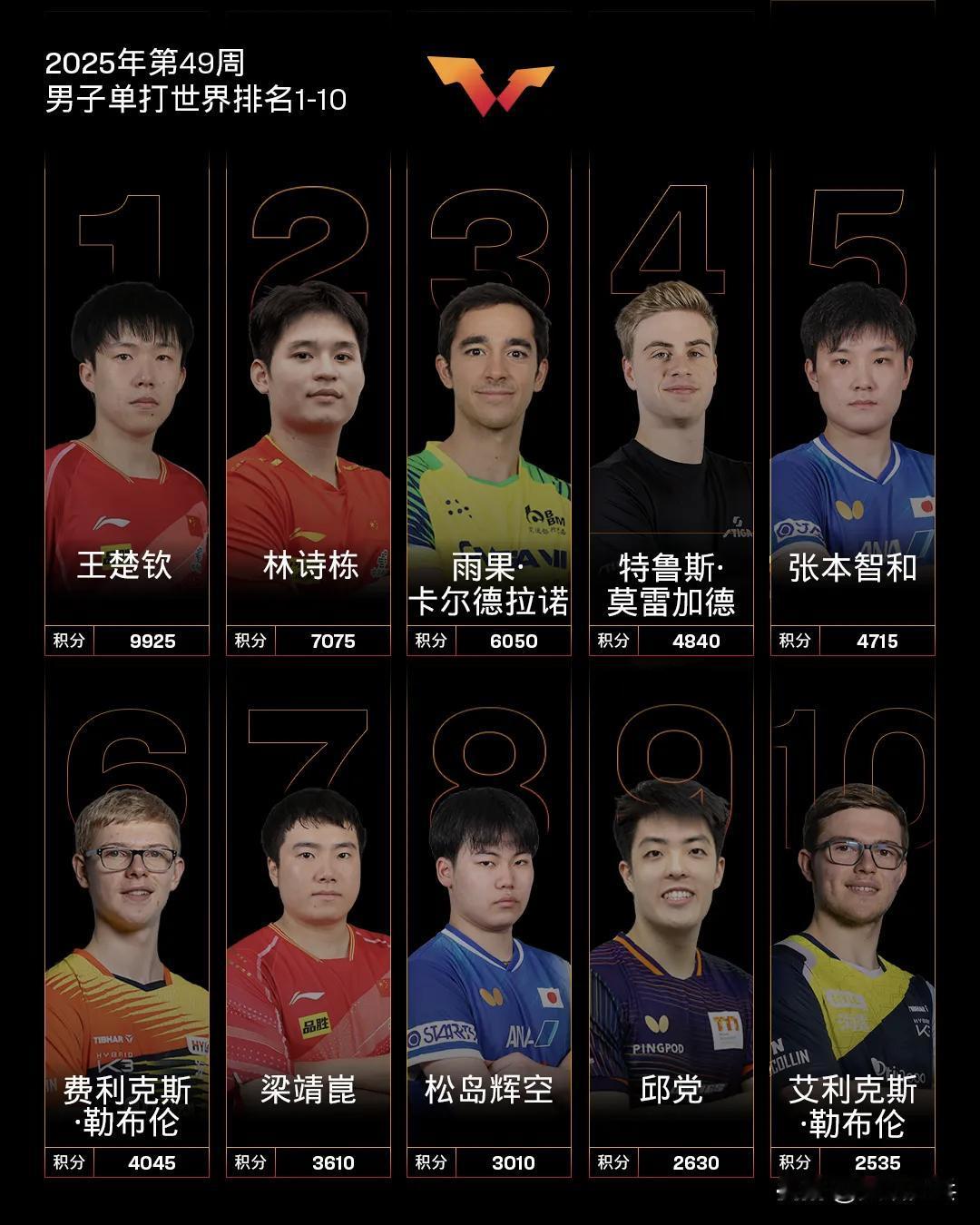 2025年第49周世界排名 【来源:ITTF 2025.12.2 星期二