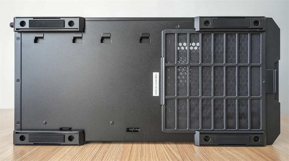 电源位下方带防尘网设计,可抽拉,方便清灰,四角均有支撑脚。