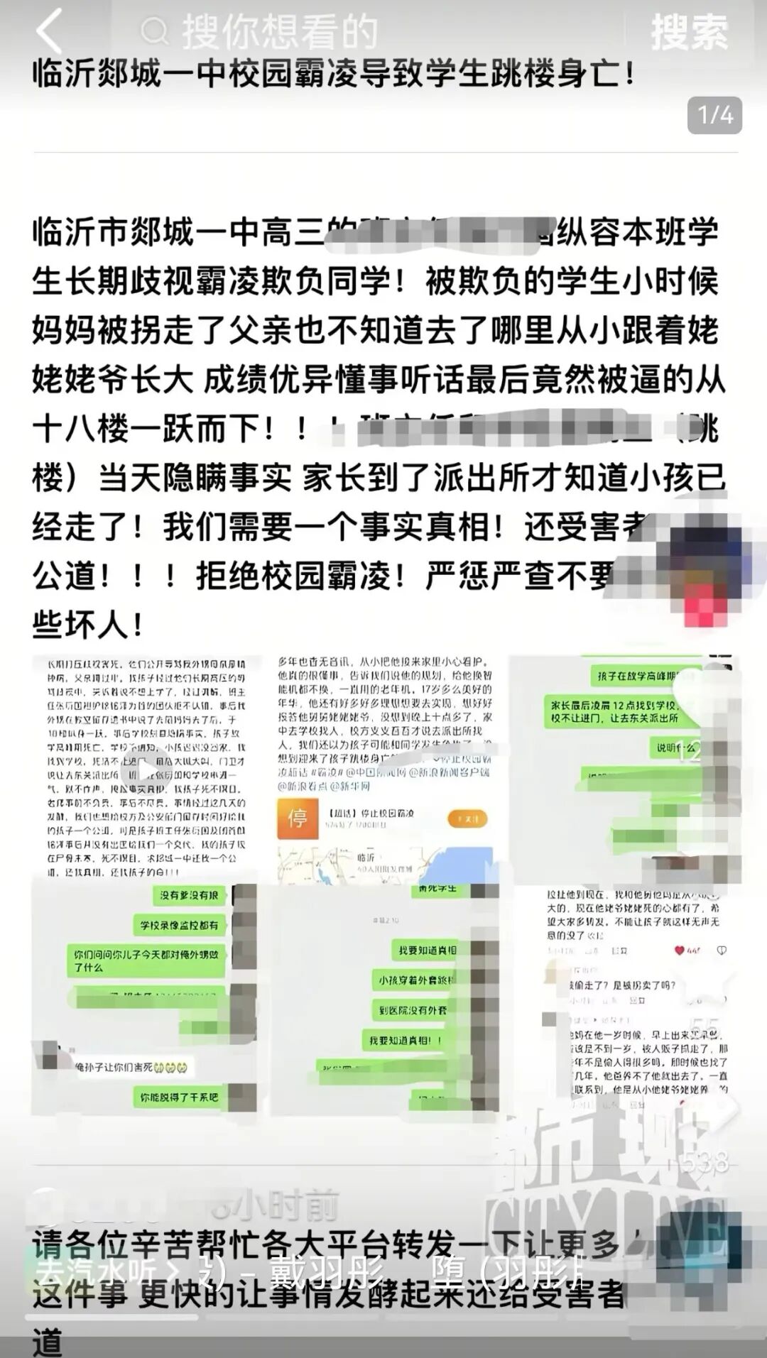 山东郯城一中高三学生校外坠楼身亡,校方:“霸凌传言”不知情